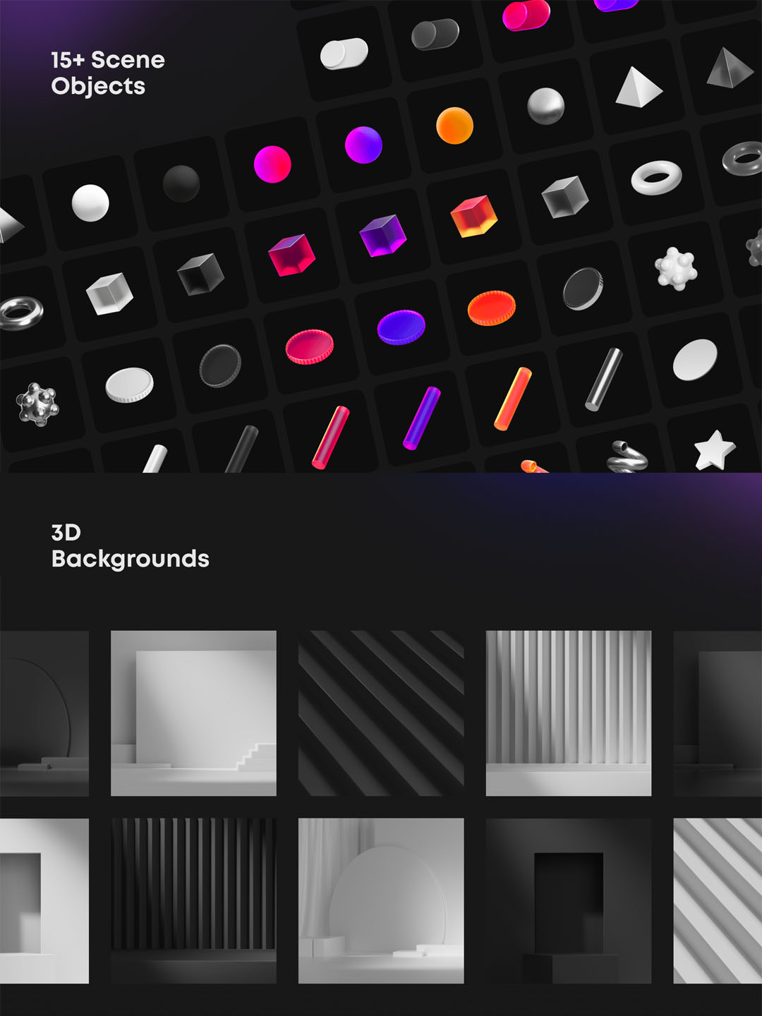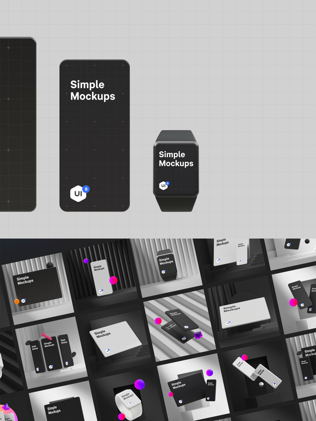 您可以在 Figma 中混合搭配不同的对象来创建自己的场景,并使用 Mockup 插件简单地应用您的 UI 设计,或者使用 Cinema4D 或微妙的动画 After Effects 文件(新)完全修改场景。