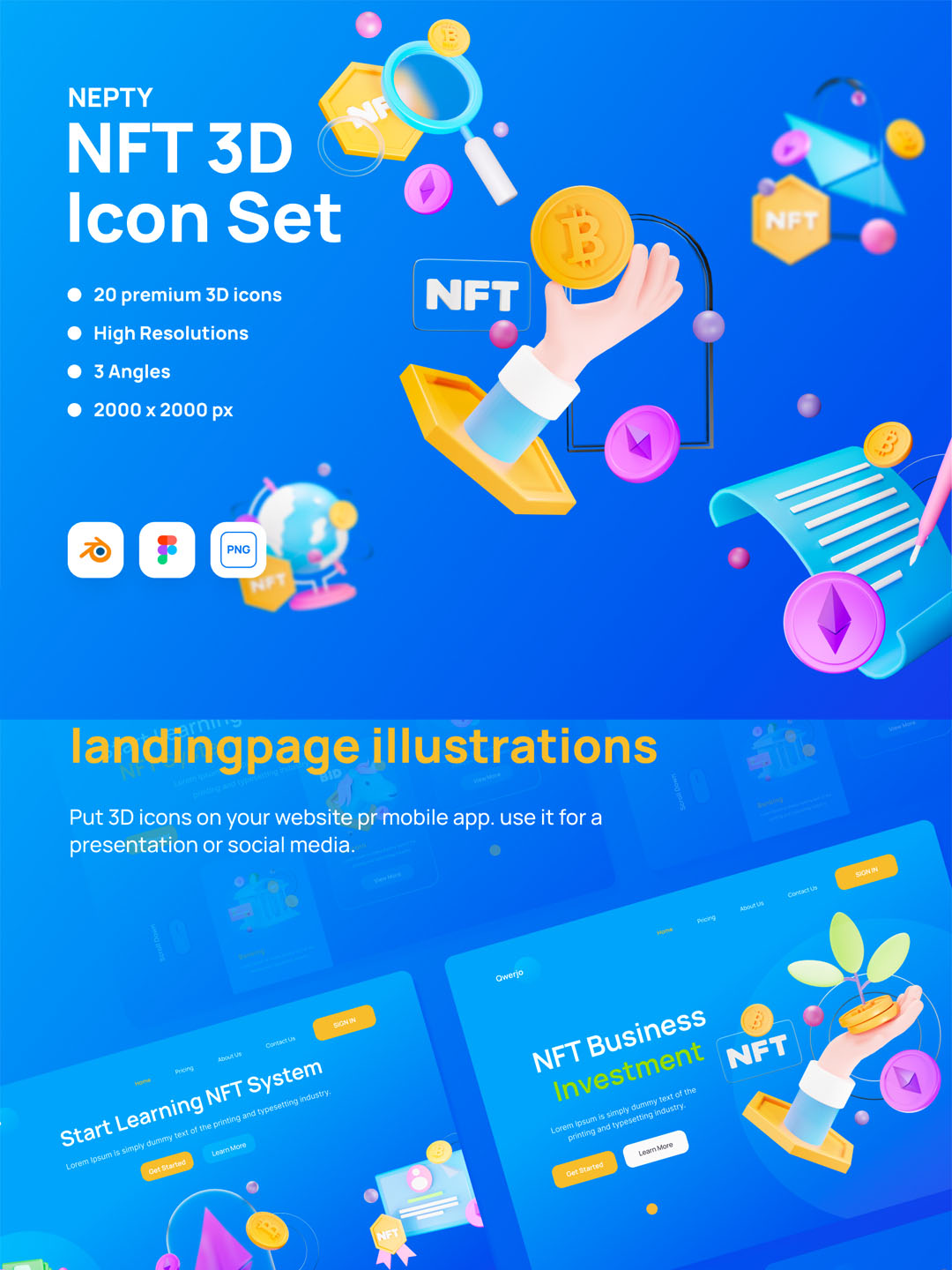 NFT资源素材、NFT货币交易元素3D插画blend源文件
