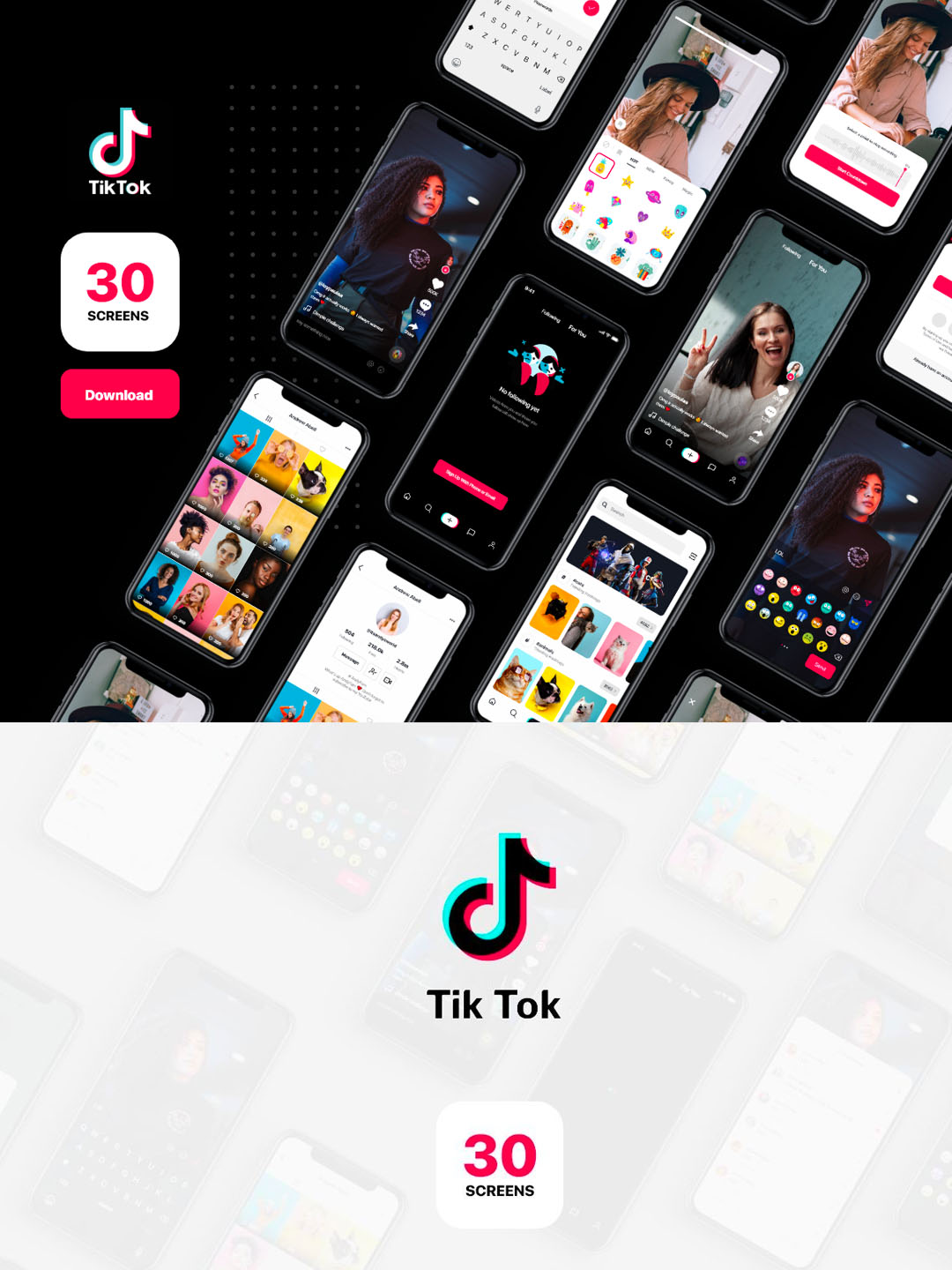 抖音短视频app 国际版Tik Tok 整套UI .xd素材下载