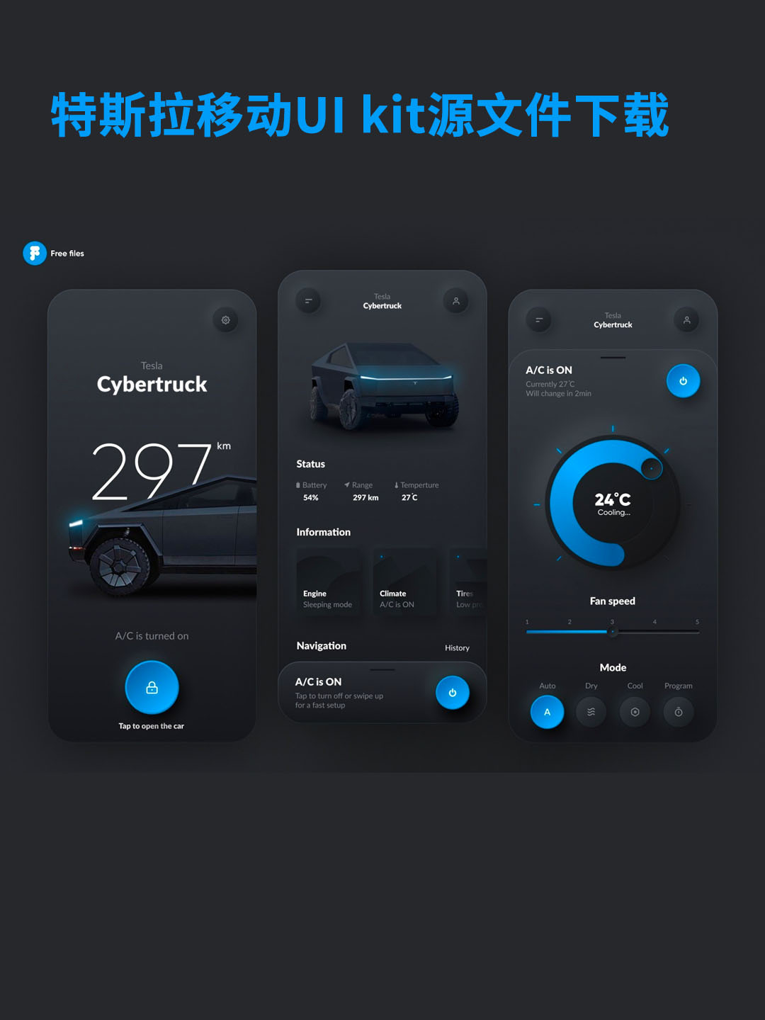 特斯拉 移动UI kit源文件下载,Neumorphic新拟物风Tesla卡车控制app UI ,fig源文件下载