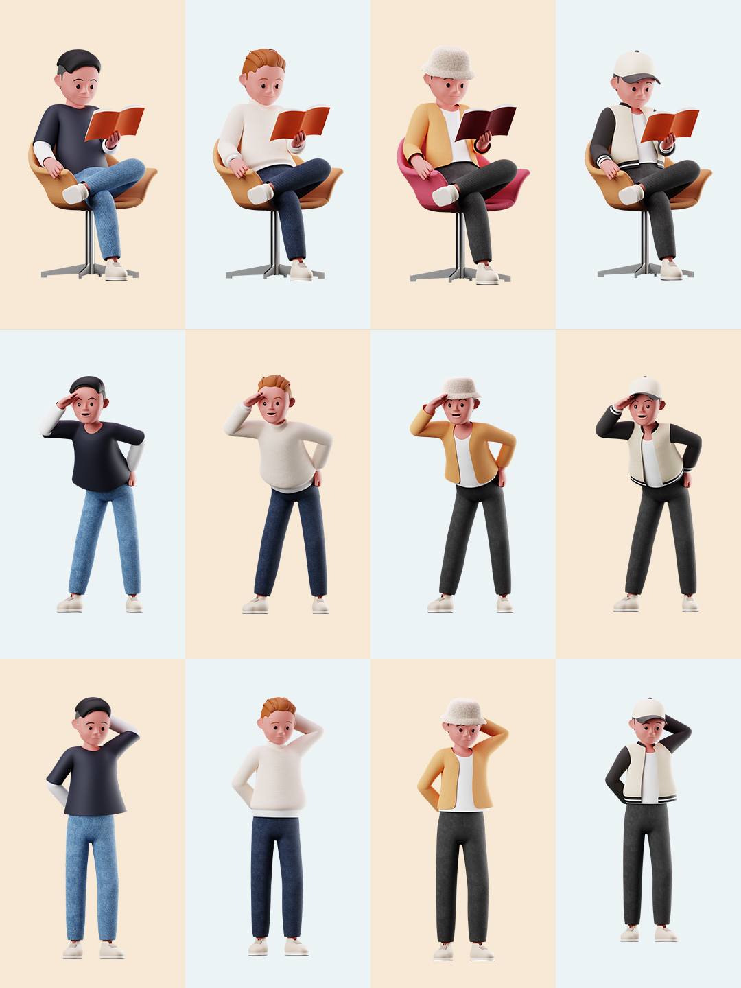 60个男女头像,以三种不同风格呈现(彩色、双色和轮廓)figma,ai,png源文件
