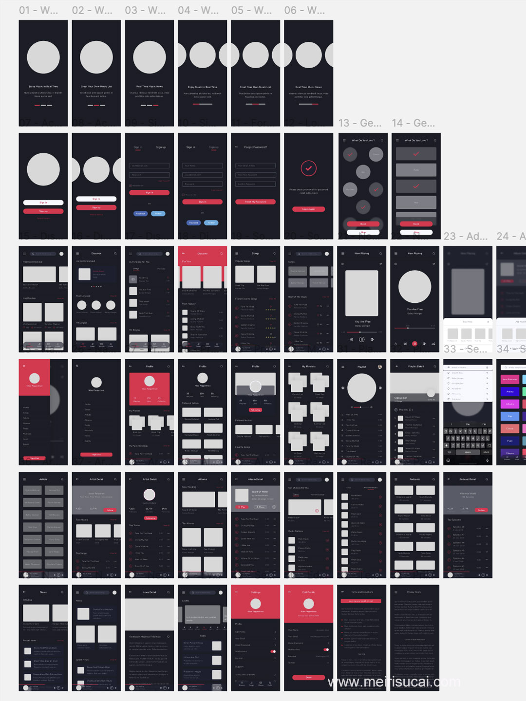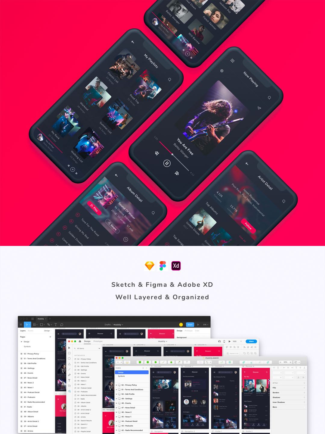 52页音乐app ui界面原型设计sketch,xd,figma资源无图片