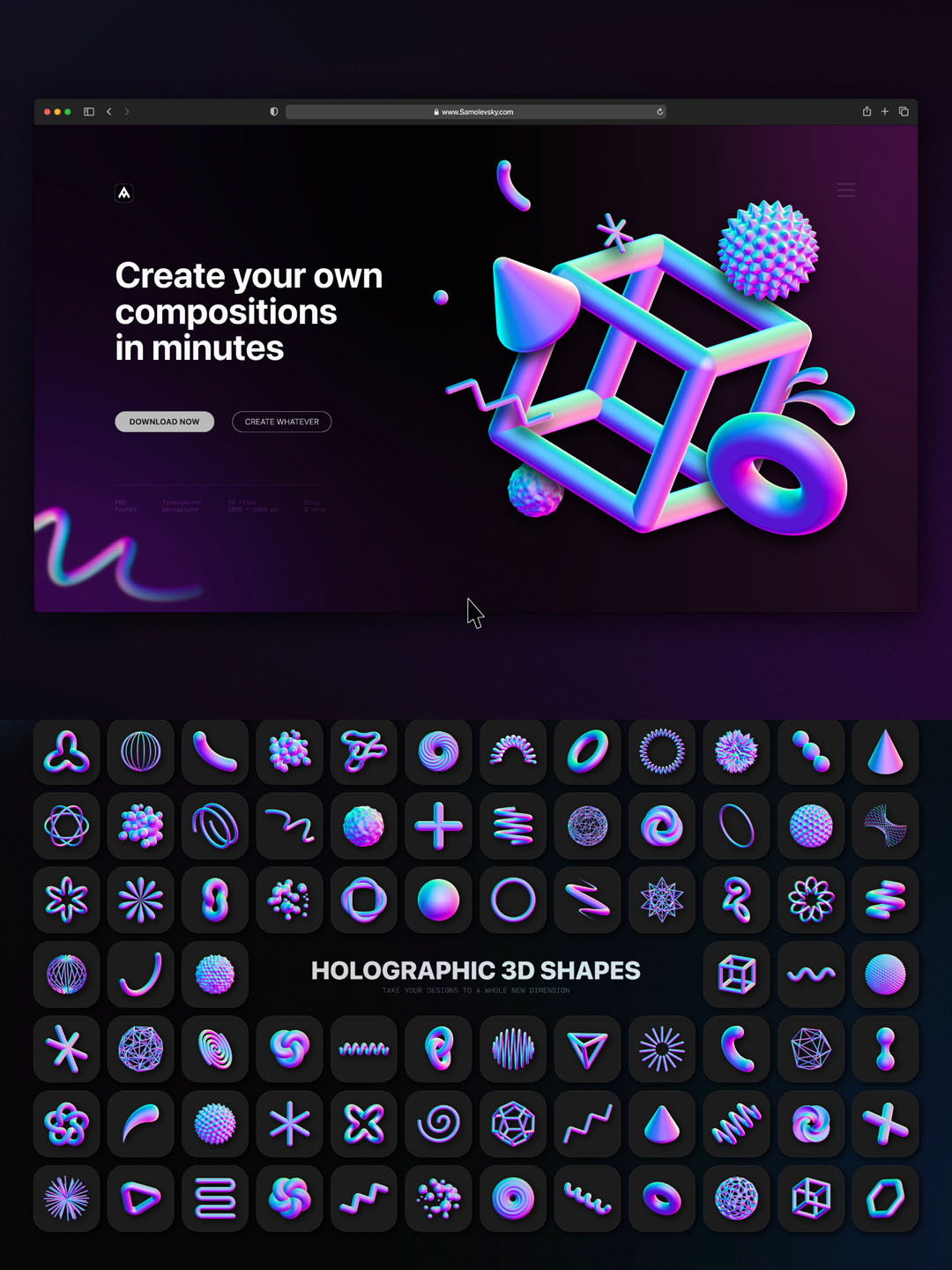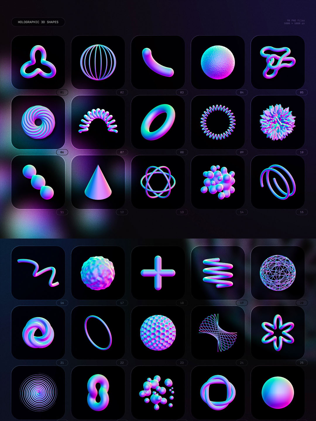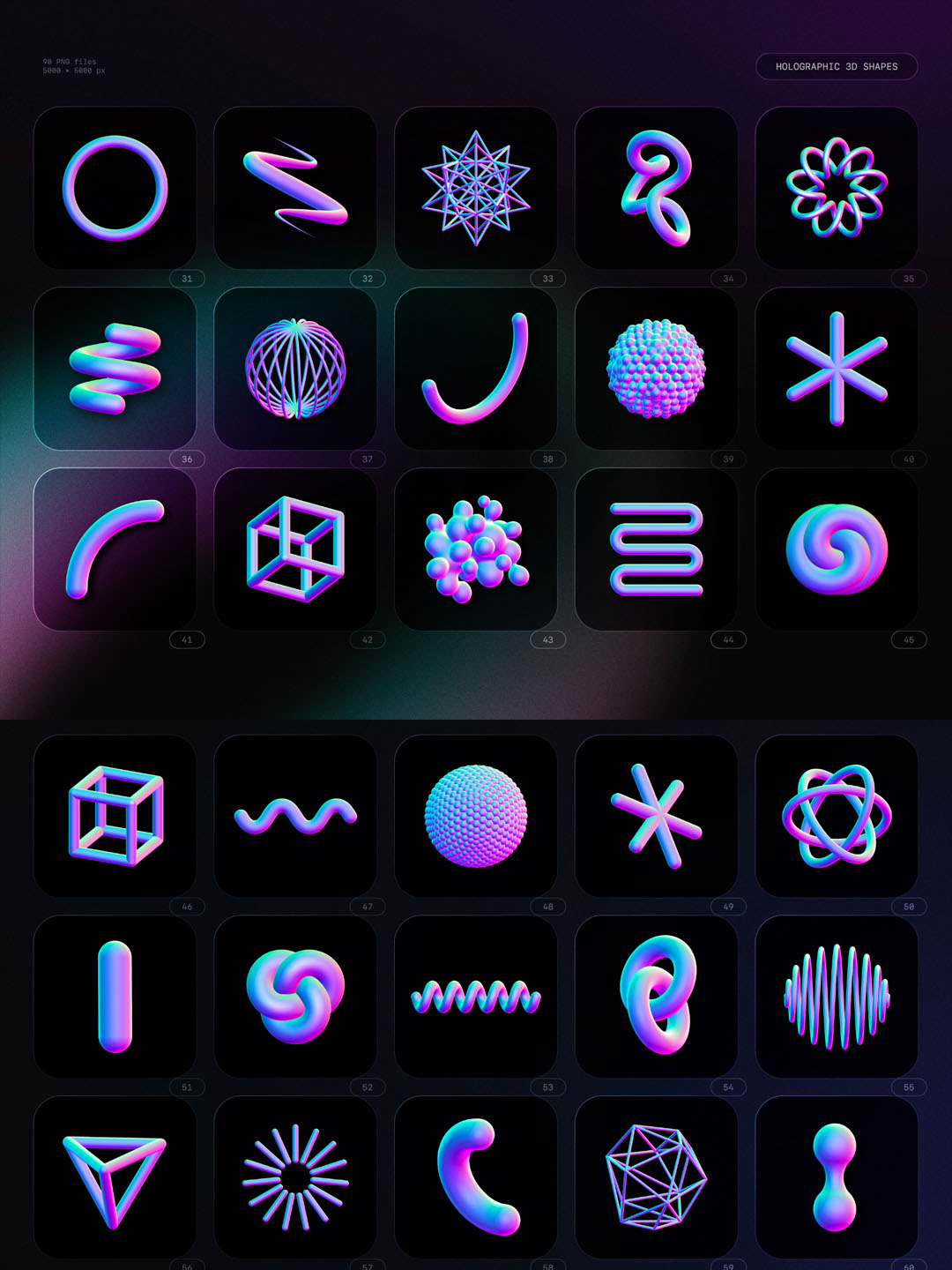 90个1.5G高清全息3D形状,3D酸性设计风高清png素材