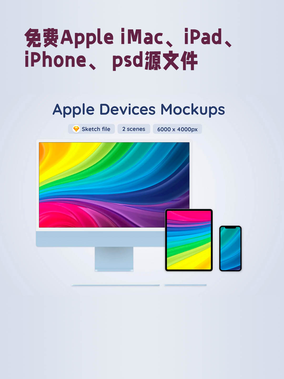 免费Apple iMac、iPad、iPhone响应式屏幕电脑样机、手机样机、平板样机mockup psd源文件