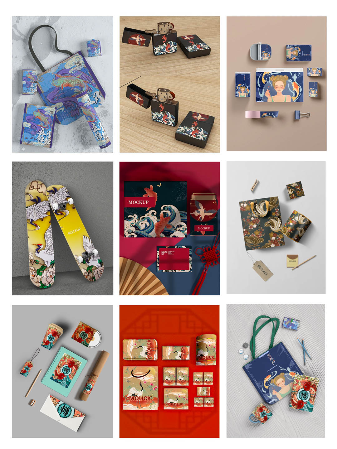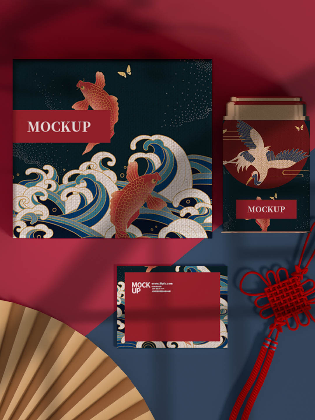 美轮美奂的国潮品牌样机展示模板psd源文件下载