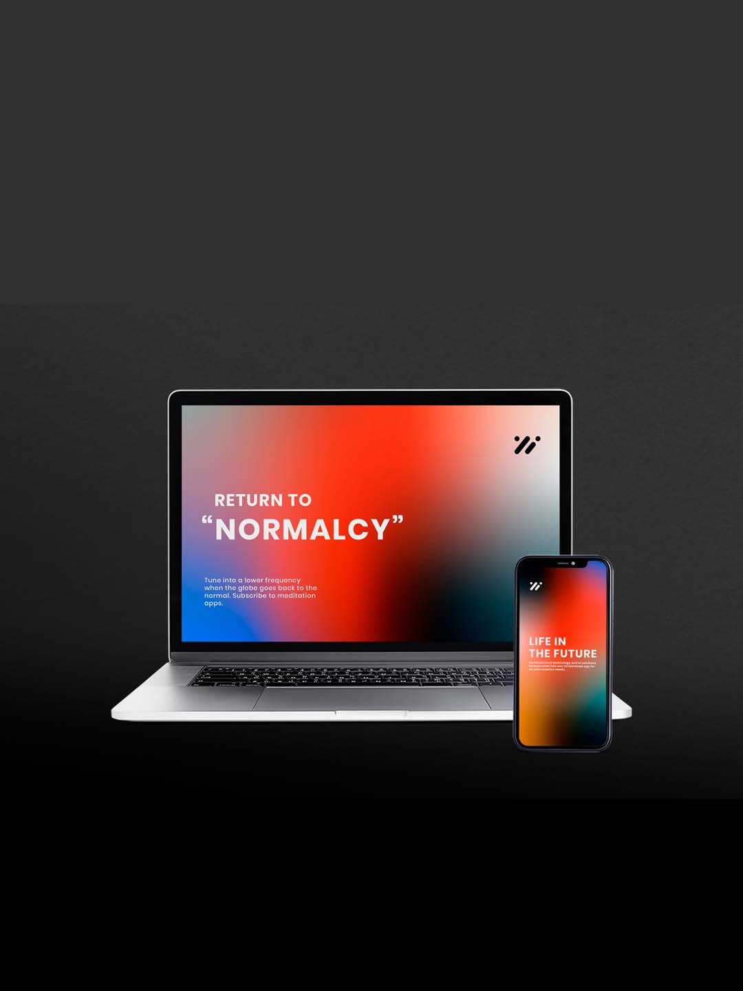 粉色迷幻风多角度iPhone和MacBook苹果设备样机mockup psd源文件下载
