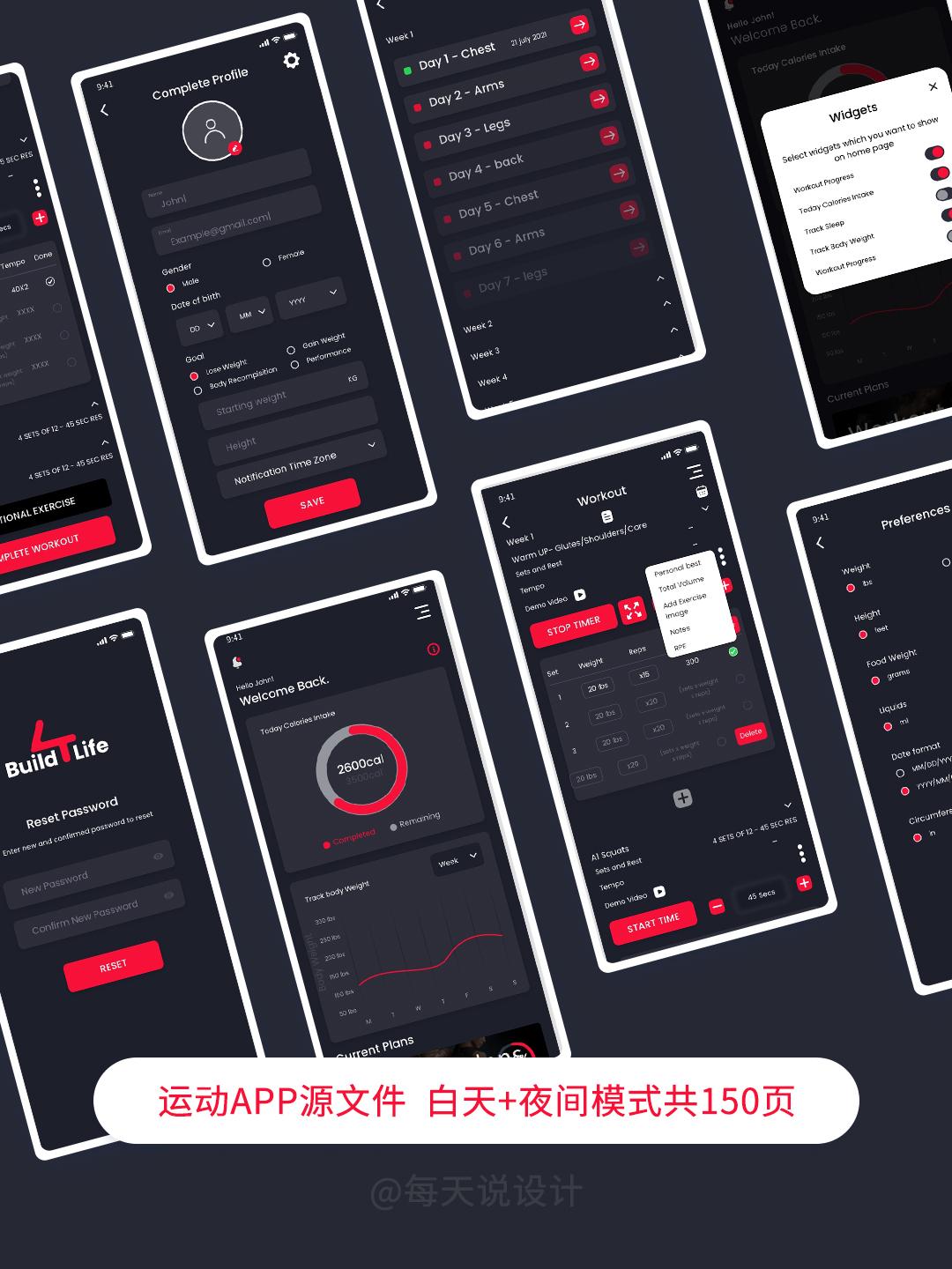 100屏Build4Life是一款健身和健美APP源文件下载XD格式