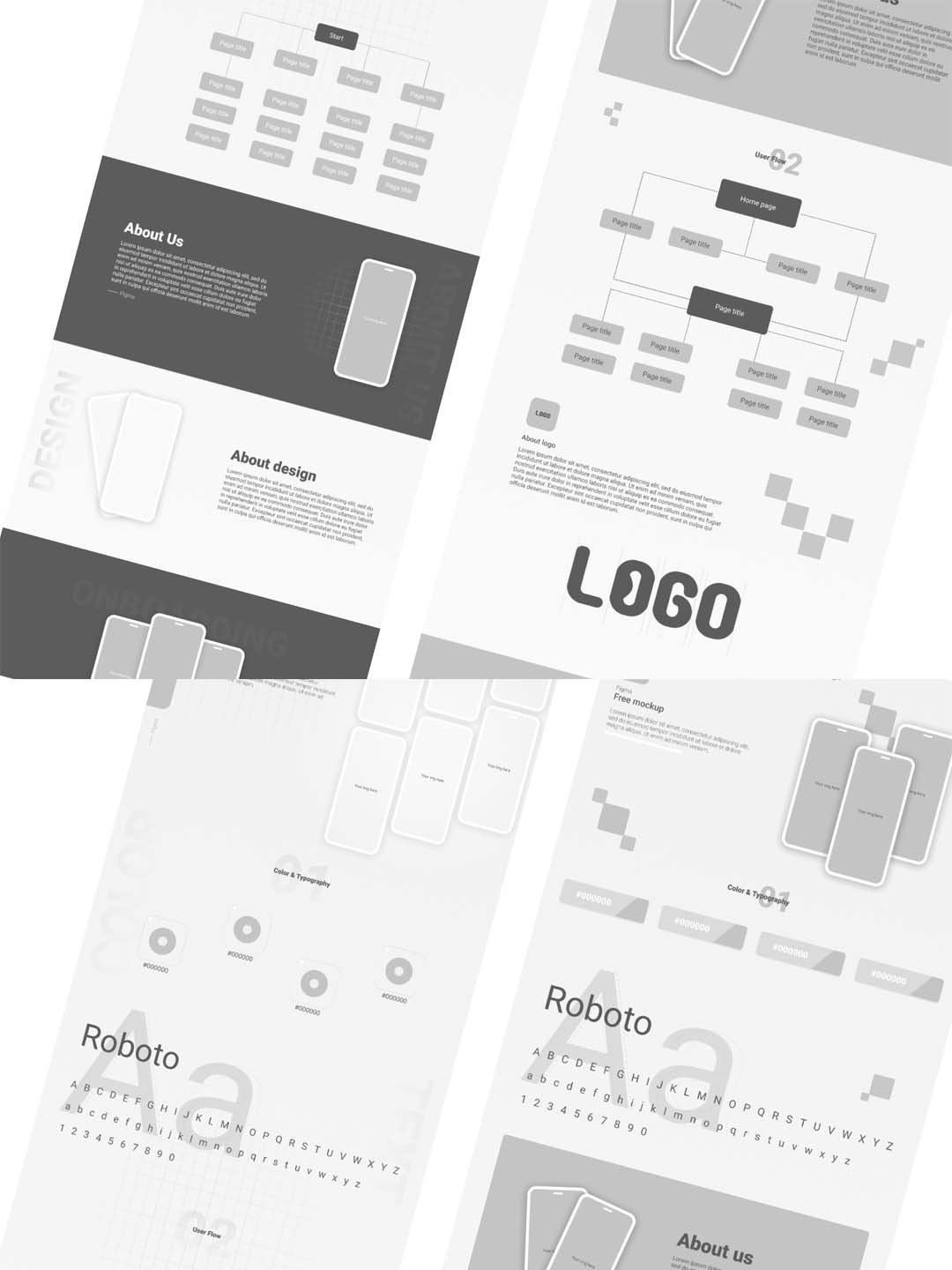 8页新能源电动汽车充电站网站低保真原型设计PSD模板