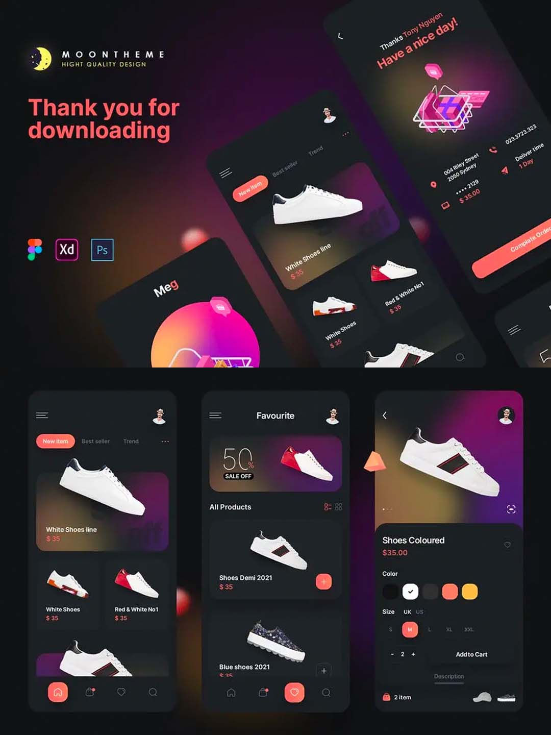 最新明暗双色风格鞋子电商app ui资源素材xd,psd,fig源文件