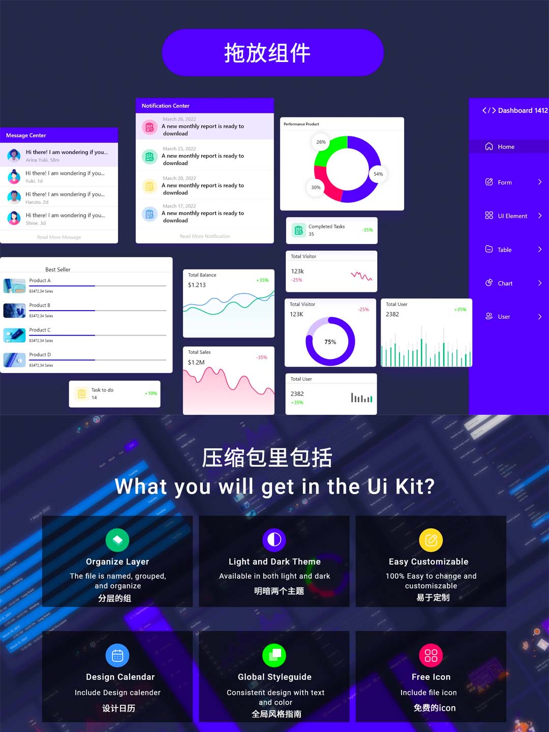 UI 工具包适合并完全可定制,适用于管理员的任何数据处理系统。也可用于其他产品设计。