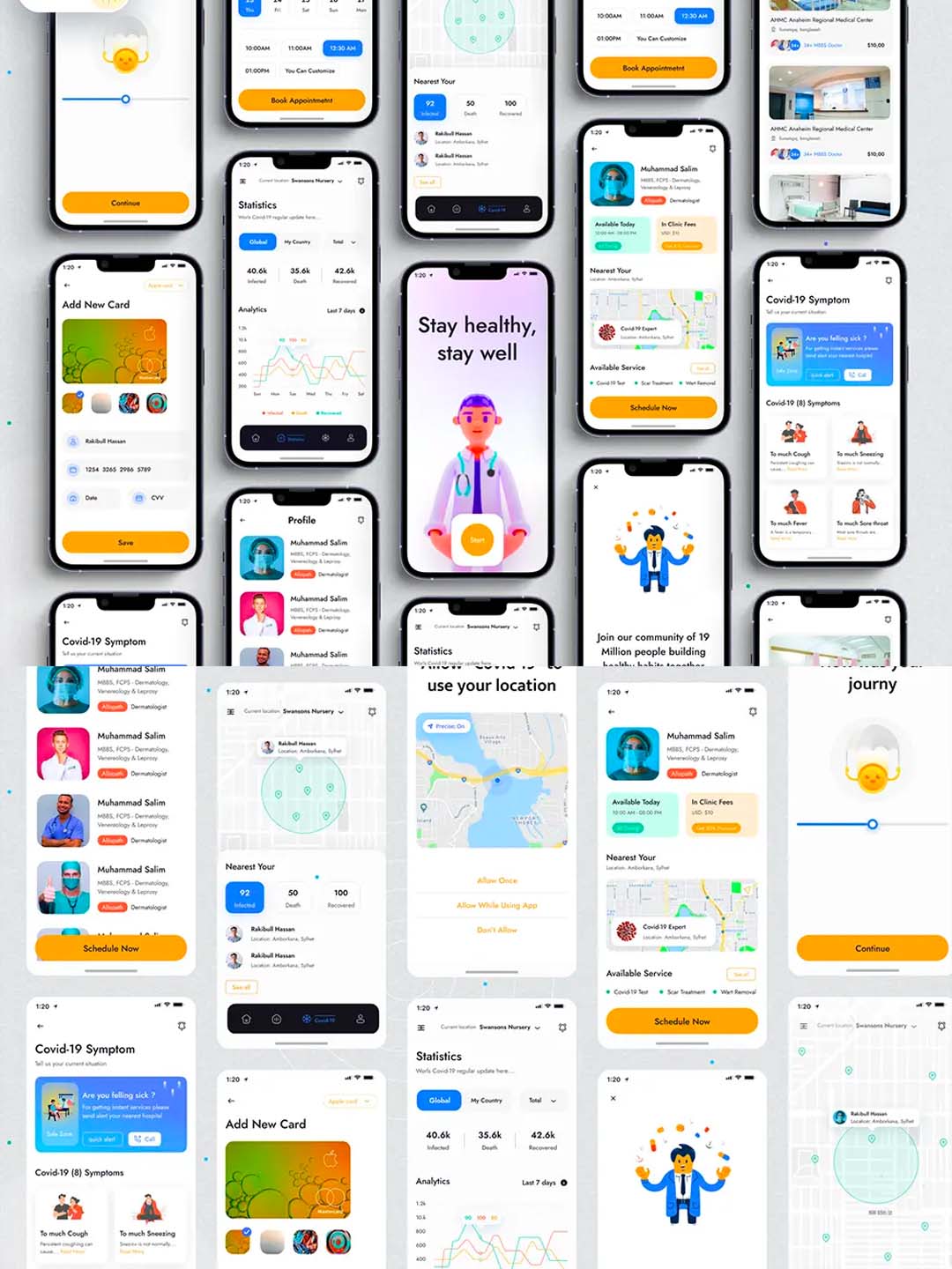 在线医疗主题App应用IOS UI资源素材套件,云诊断、云医疗APP ui素材 figma源文件