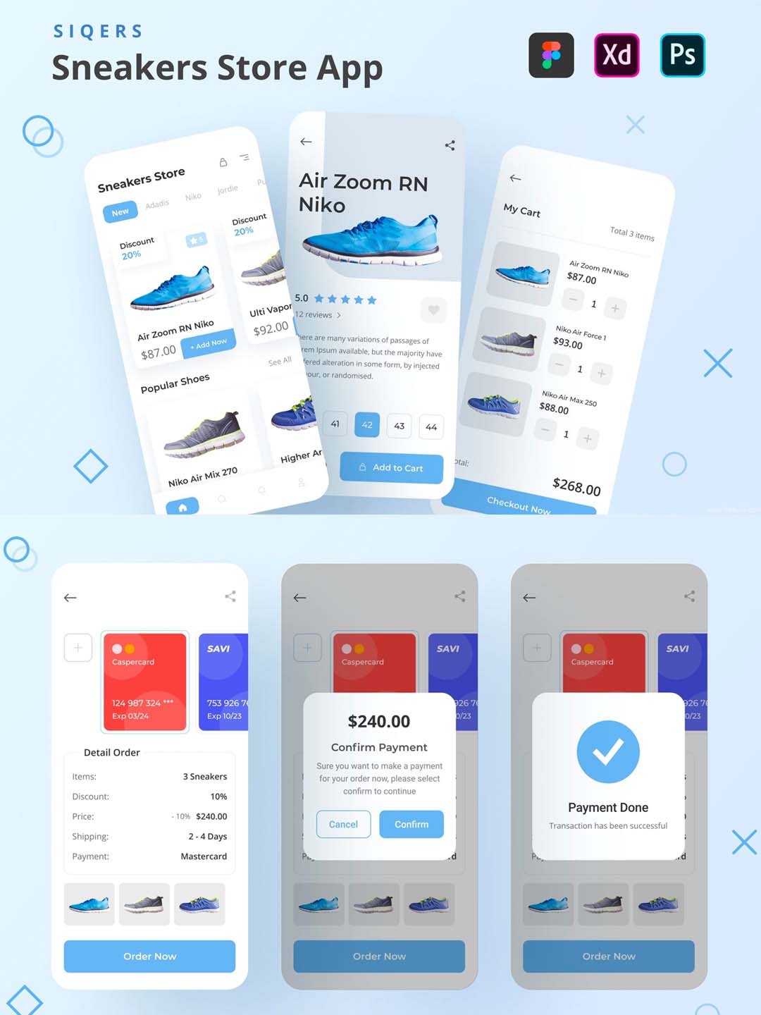 运动鞋电商APP UI设计资源素材 FIG,XD,PSD源文件