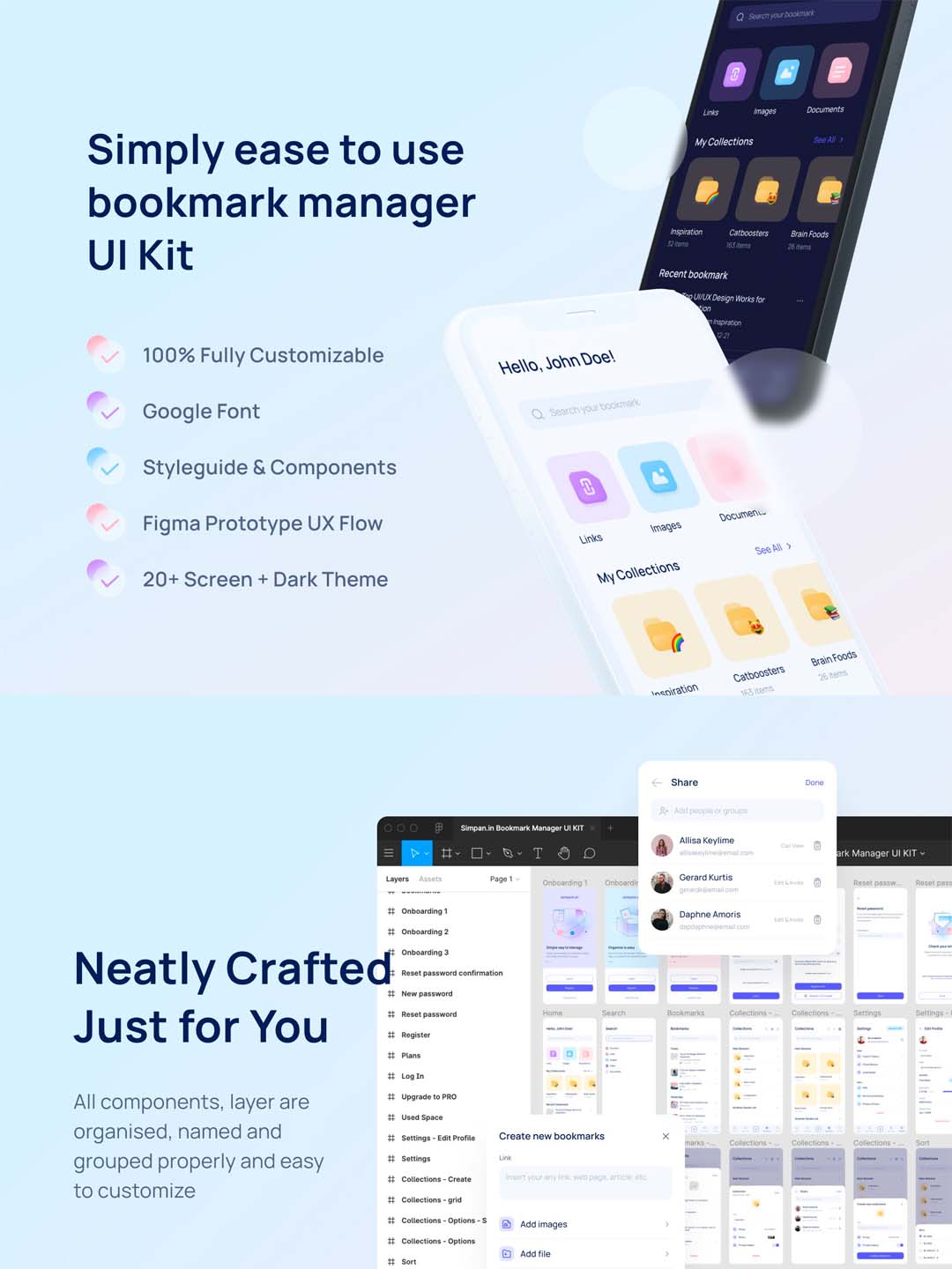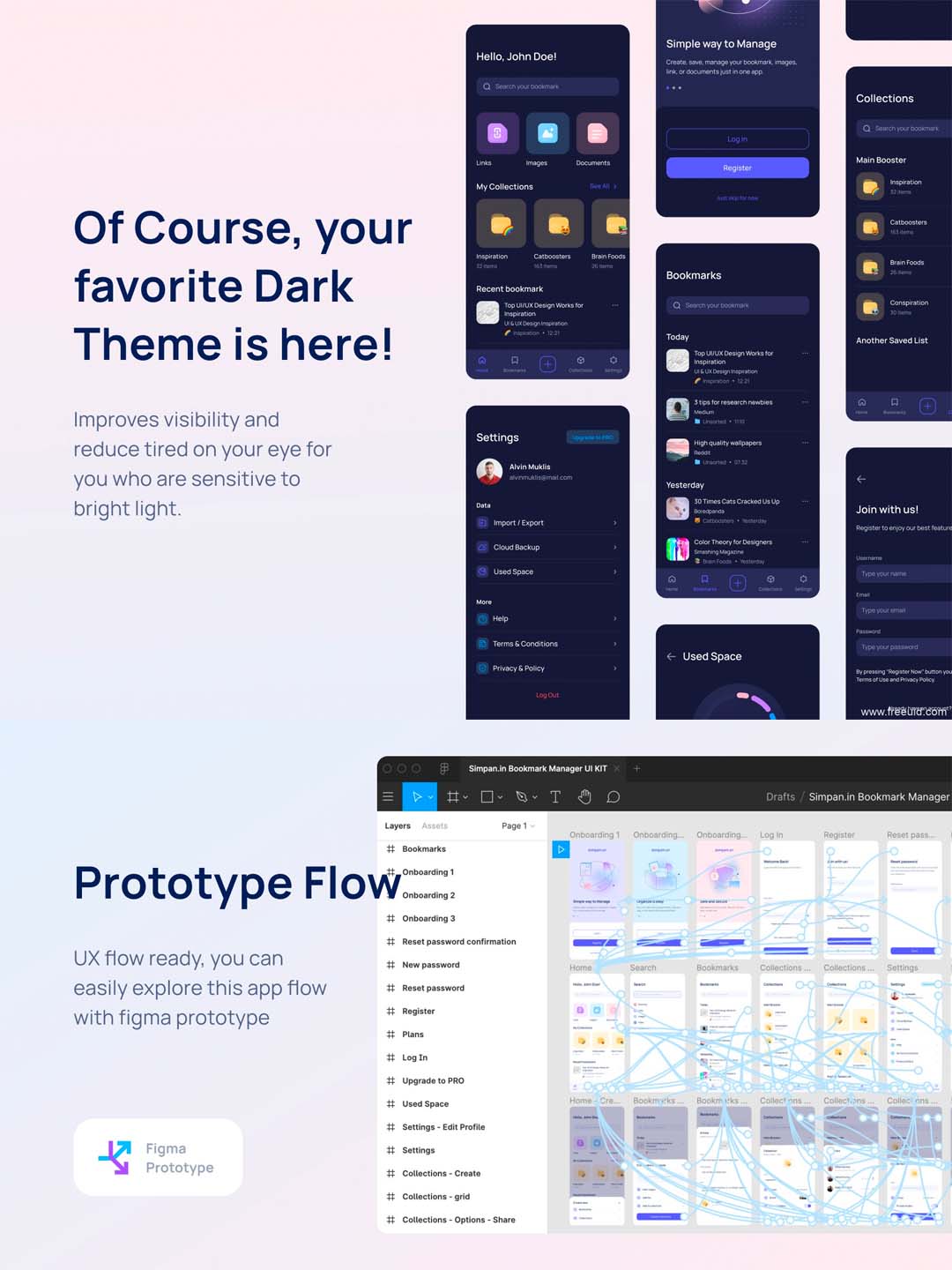 40页小清新风格书签管理,订阅,网址管理APP设计素材figma源文件