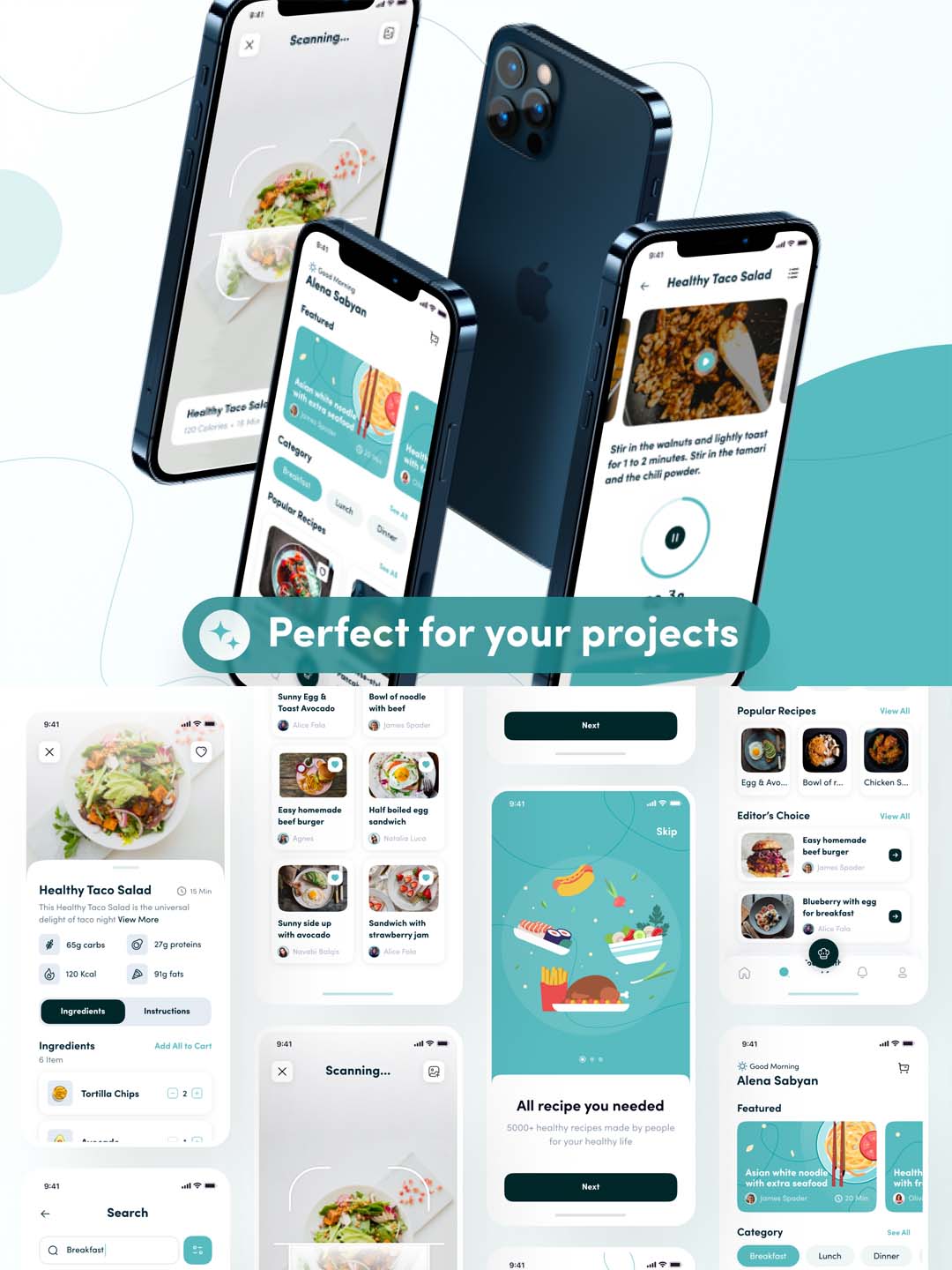 简约清新的食谱/美食app UI资源素材figma源文件下载