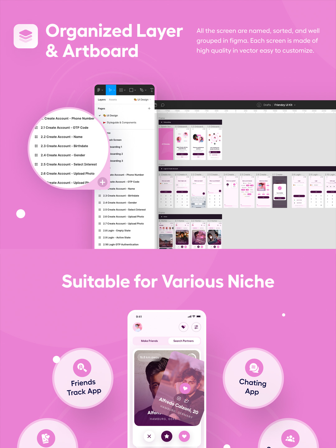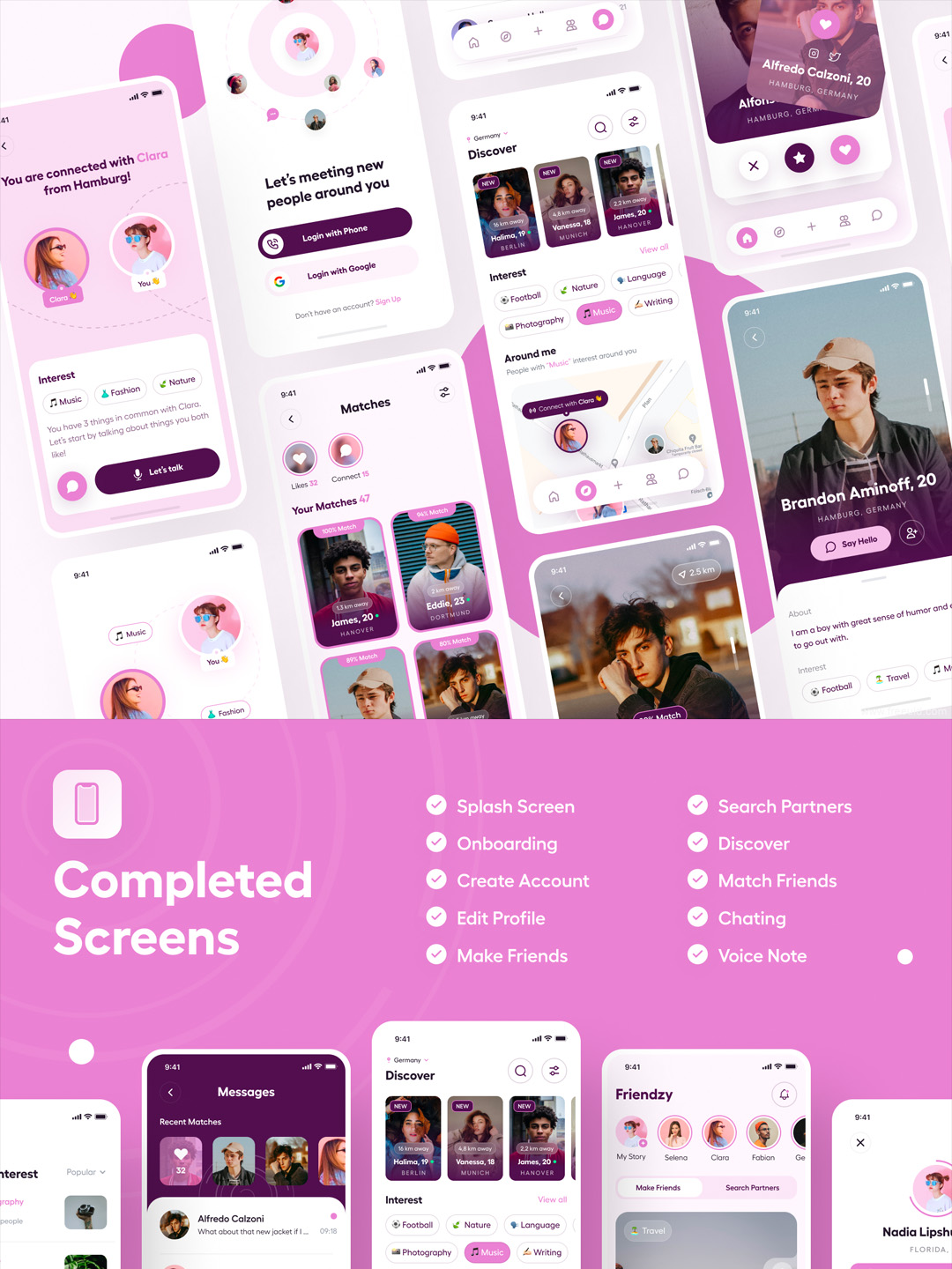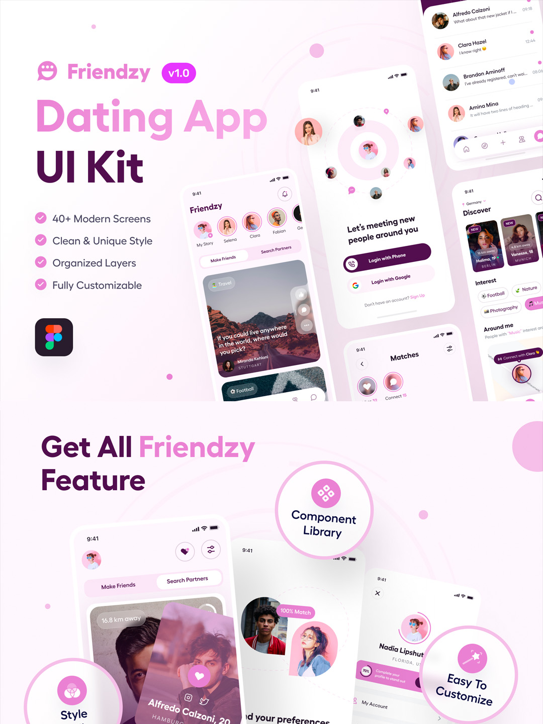 恋爱app、陌生人匹配、交友APP UI资源套件figma源文件