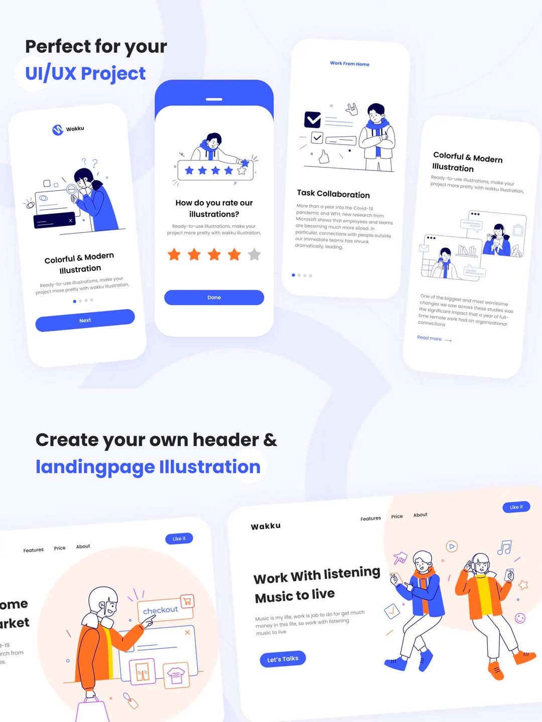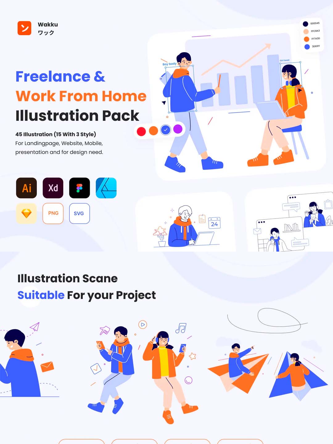 一套居家办公主题和自由职业工作主题的运营插画素材包ai,xd,fig,sketch源文件