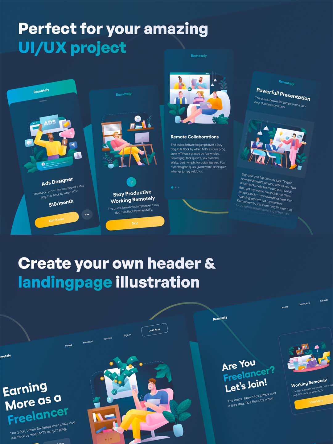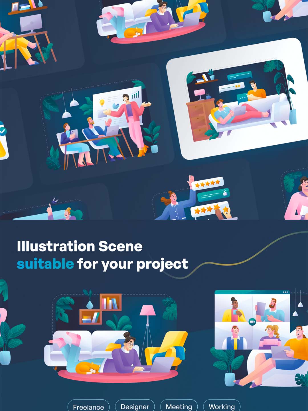 一套远程办公场景UI食量插画ai源文件下载