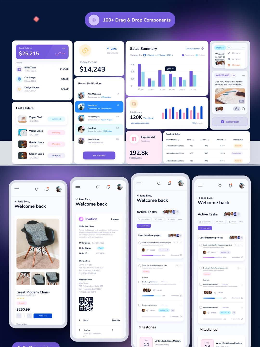 响应式80页营销仪表板UI工具包figm源文件
