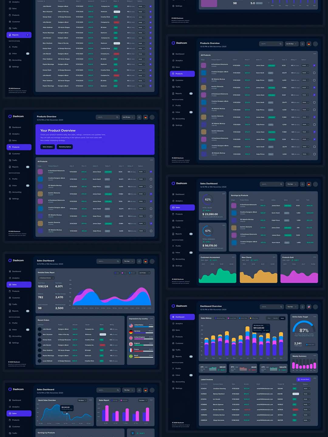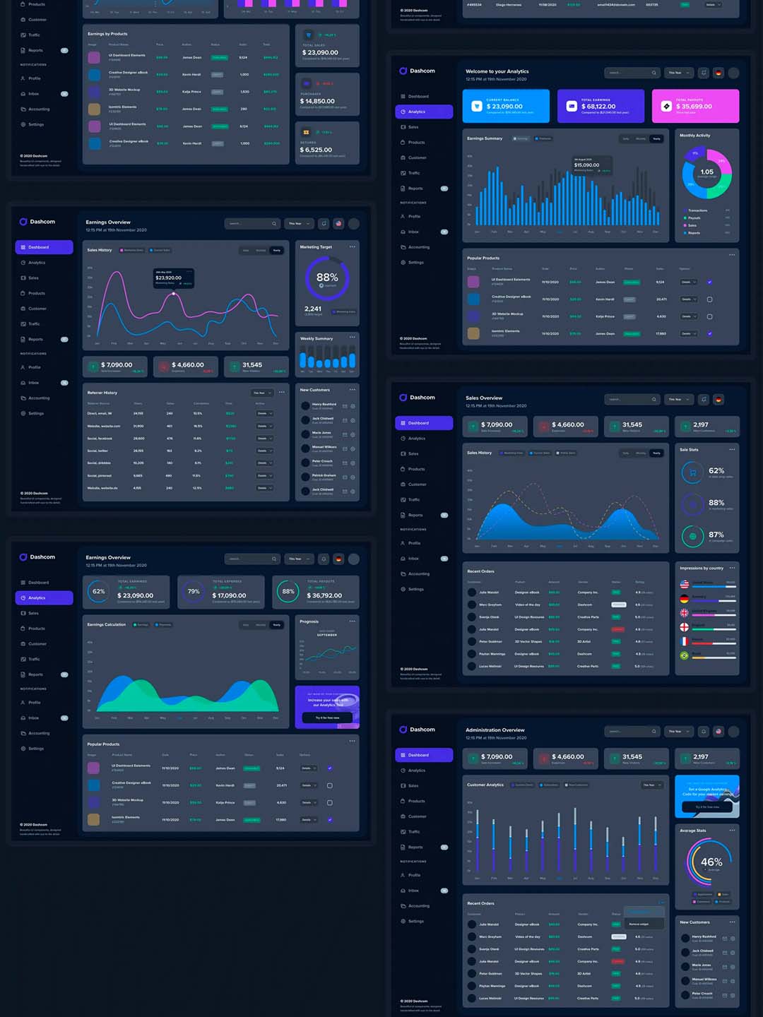 暗色风格B端UI界面设计,后台数据统计、后台管理dashboard仪表盘 fig,sketch,xd,psd源文件
