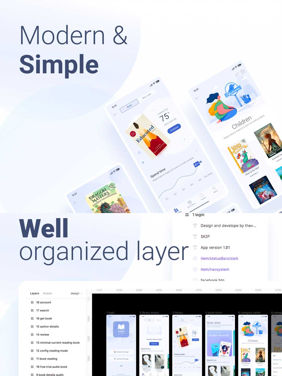 轻量在线电子书城、在线书店、阅读app UI界面设计套件figma源文件