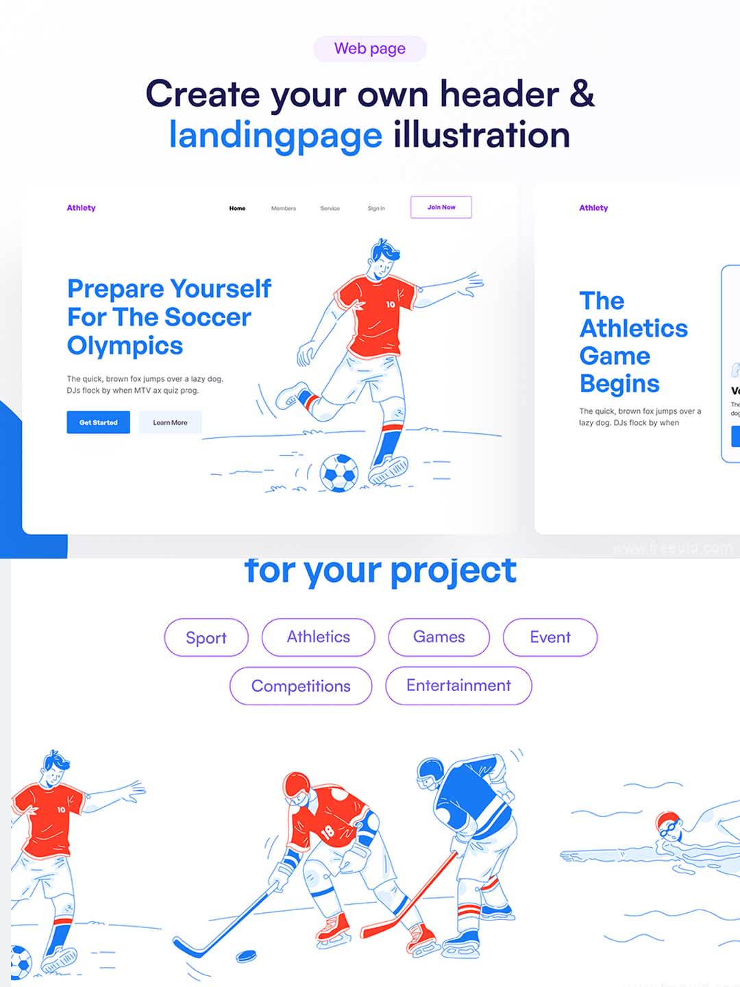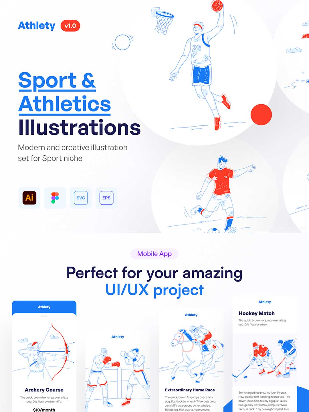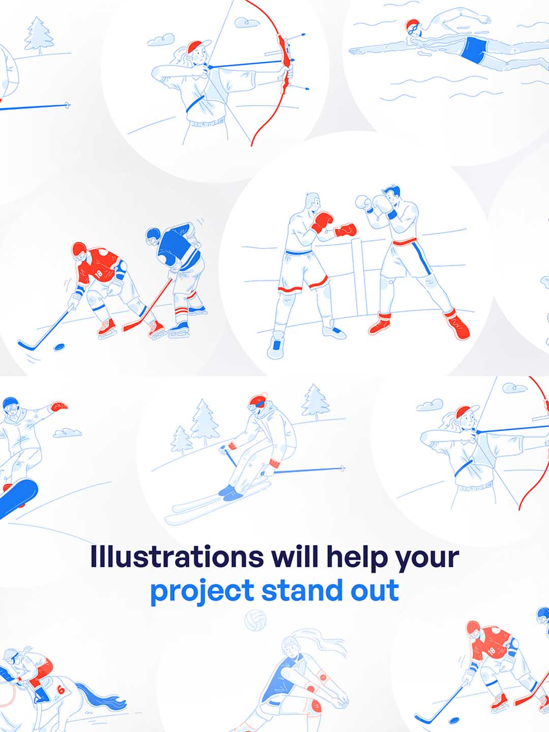 现代体育运动插画套件运营素材库,现代体育项目插画主题集合矢量素材库
