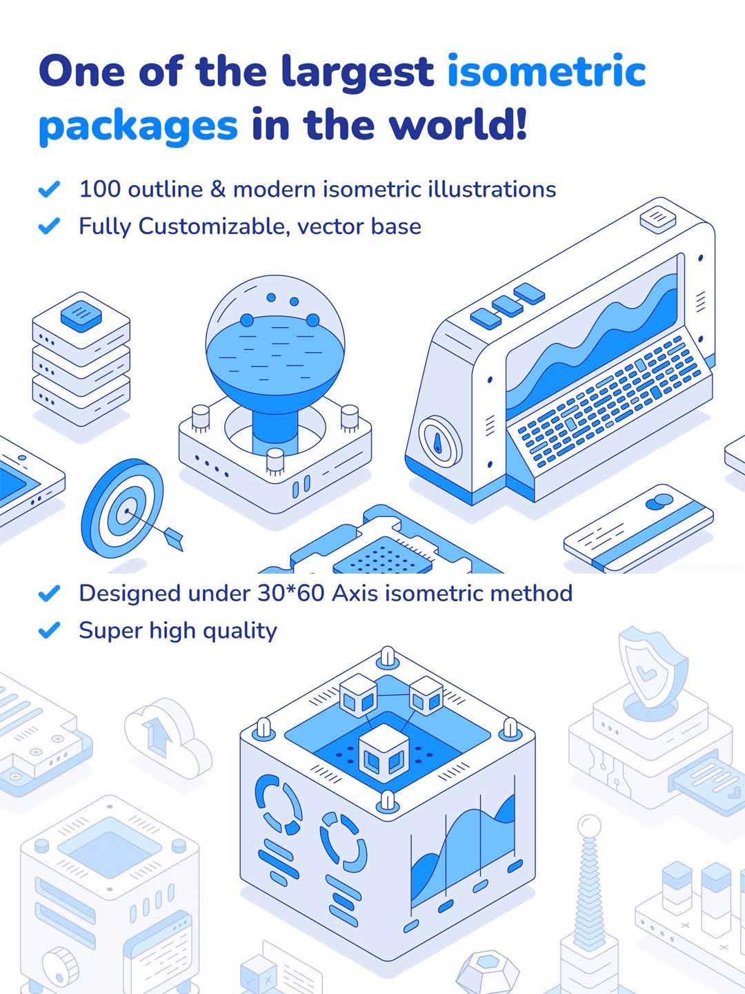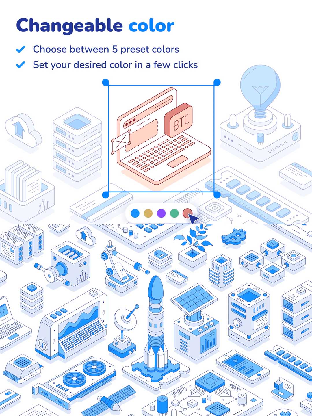 精选科技感简约2.5D插画源文件,着陆页UI源文件AI、Esp、SVG下载