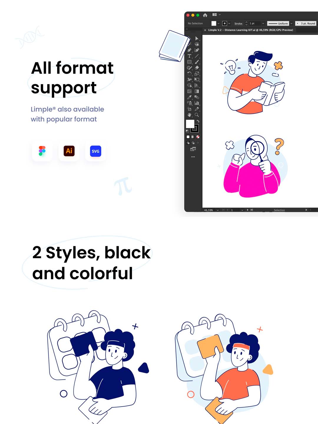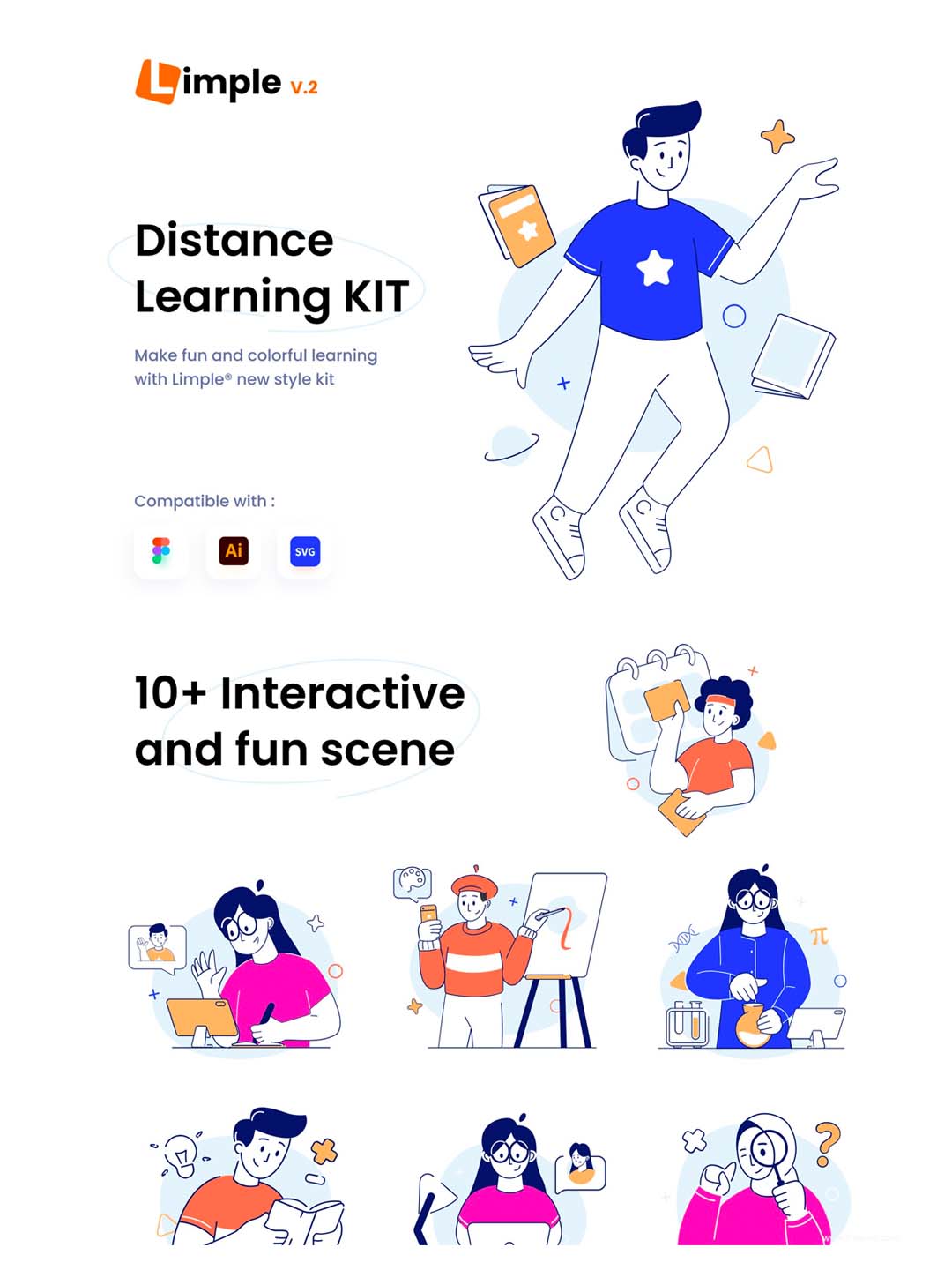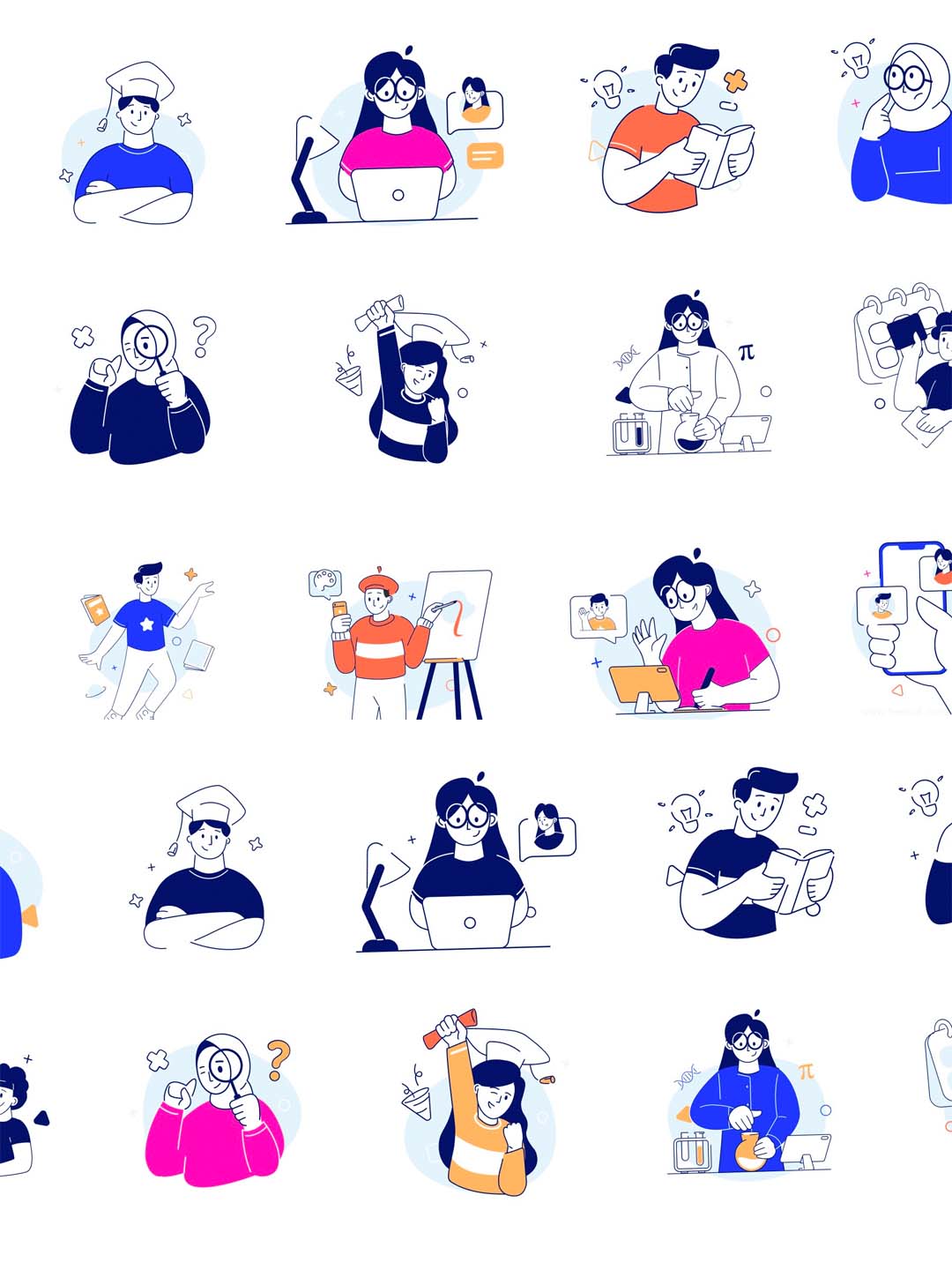 在线学习相关的可爱风矢量线条插画素材ai源文件下载