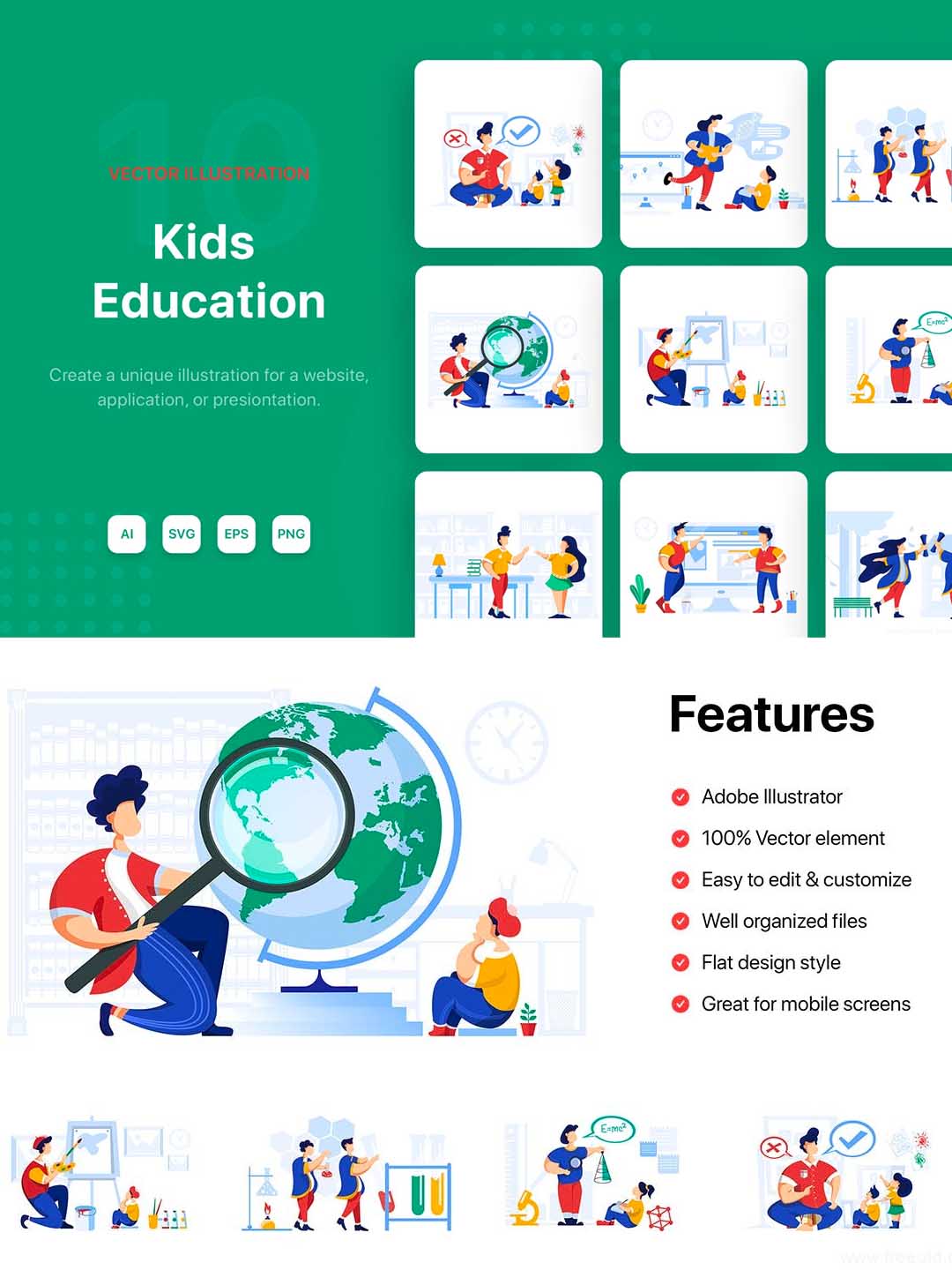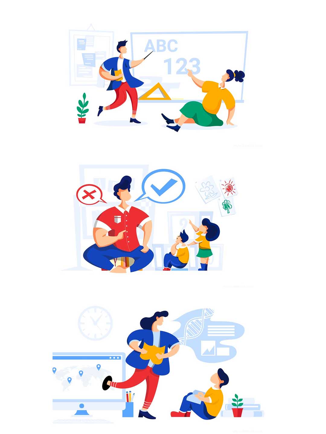 一套K12在线教育运营插画矢量源文件下载,儿童教育运营插画ai源文件