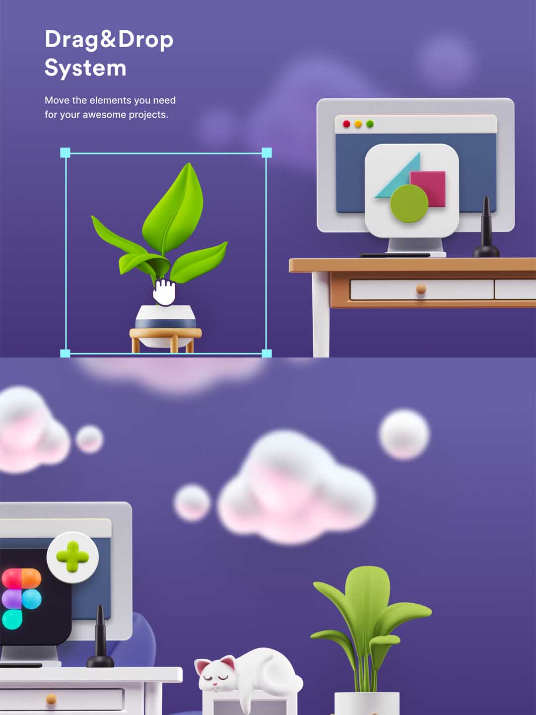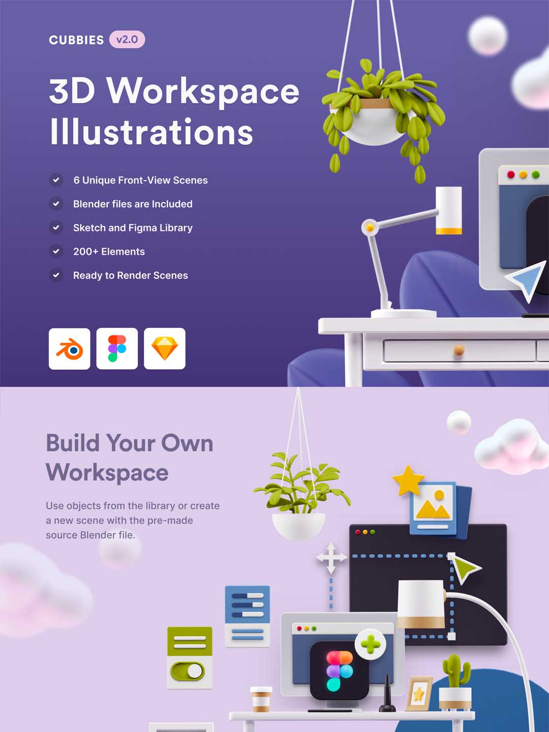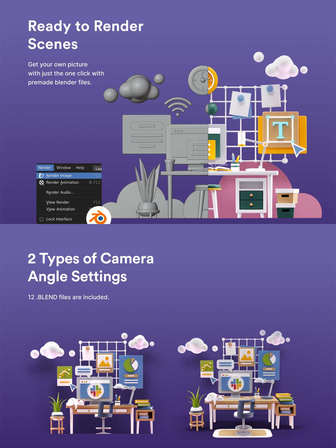 一套办公室场景3D插画资源下载,办公桌办公场景运营3D插画素材blend源文件下载,sketch,blend,fig源文件下载