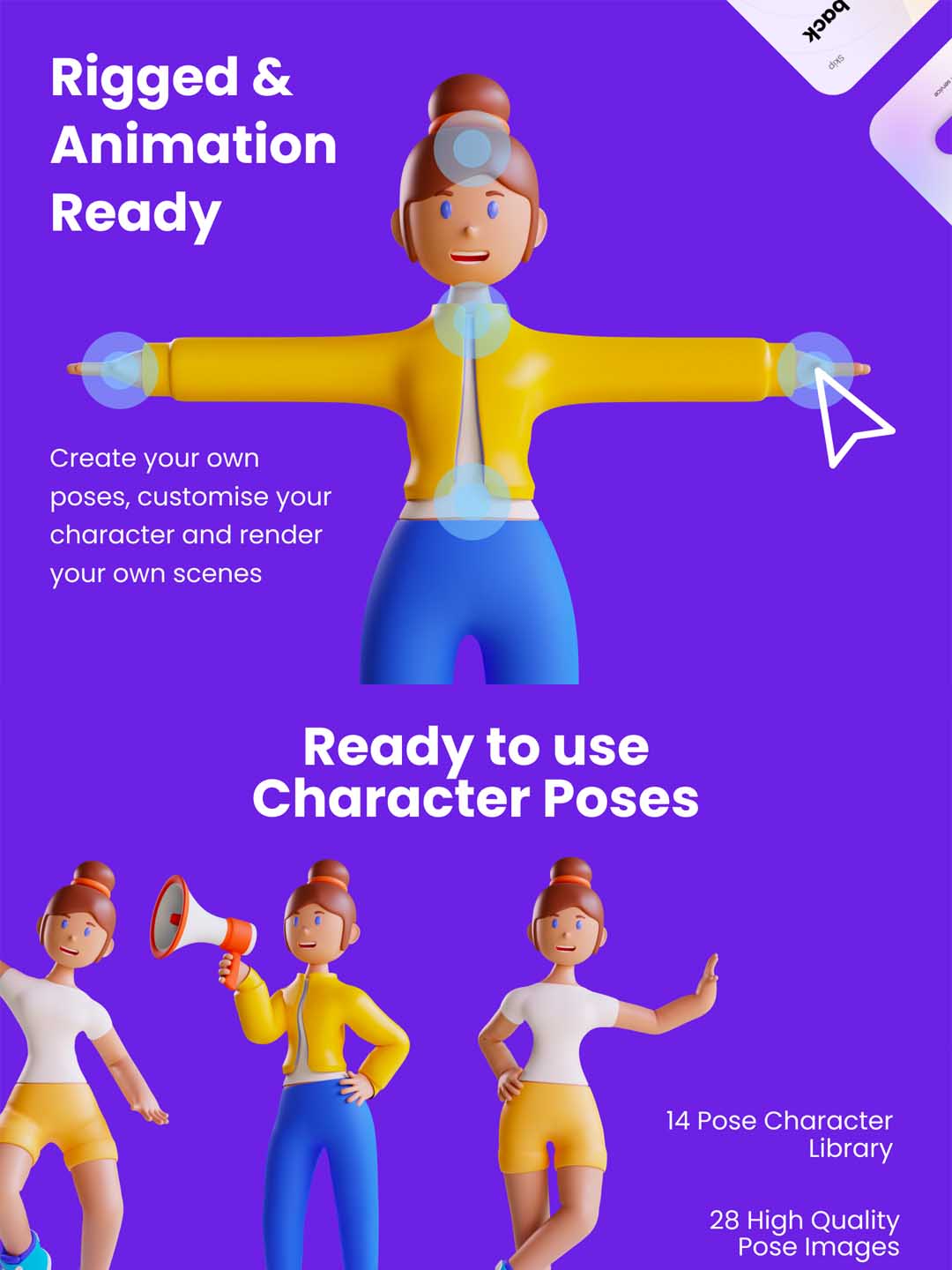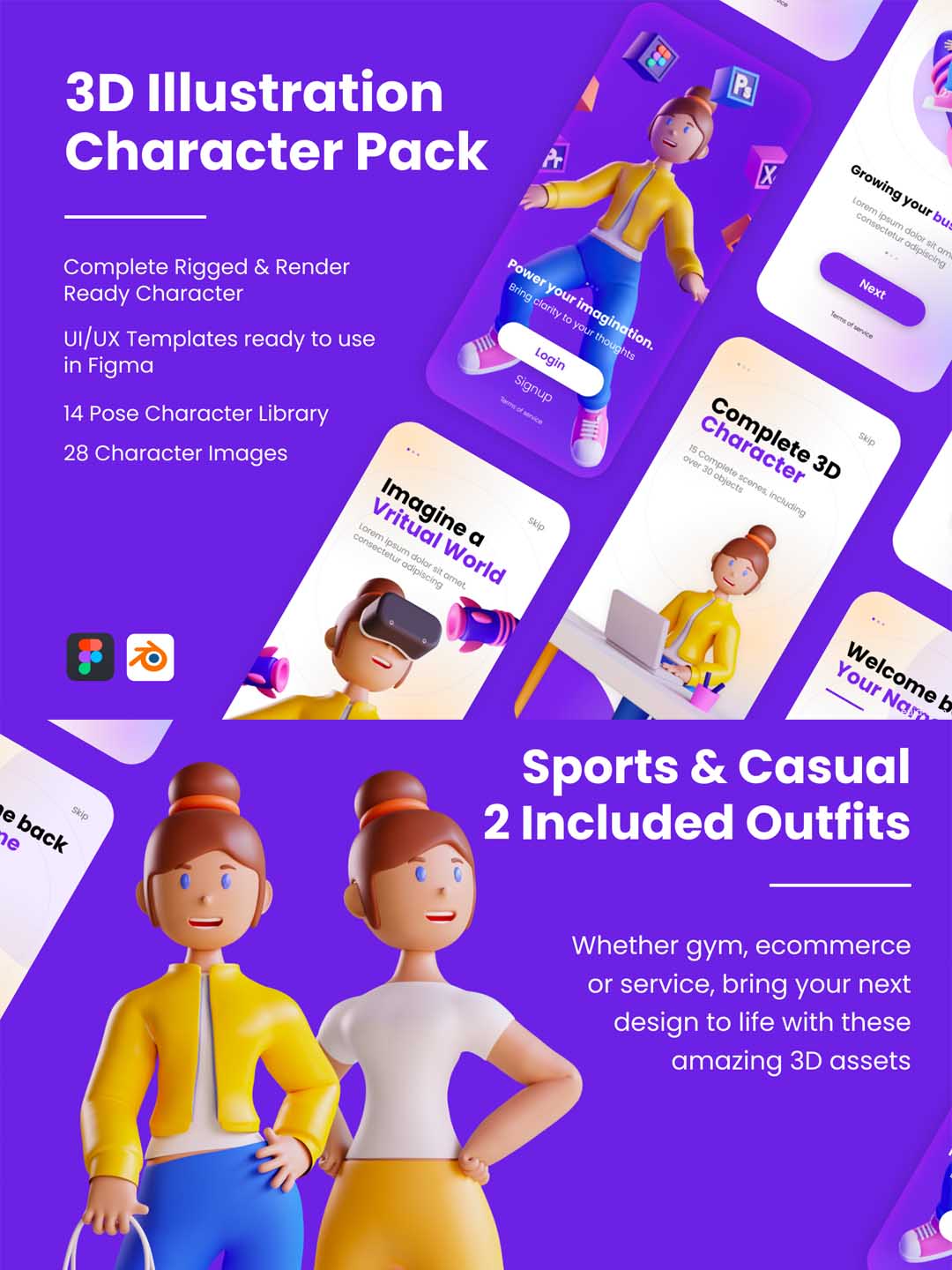 精品3D人物角色插画UI素材下载,高质量3D Web插画-角色和UI / UX包 fig,blend源文件下载