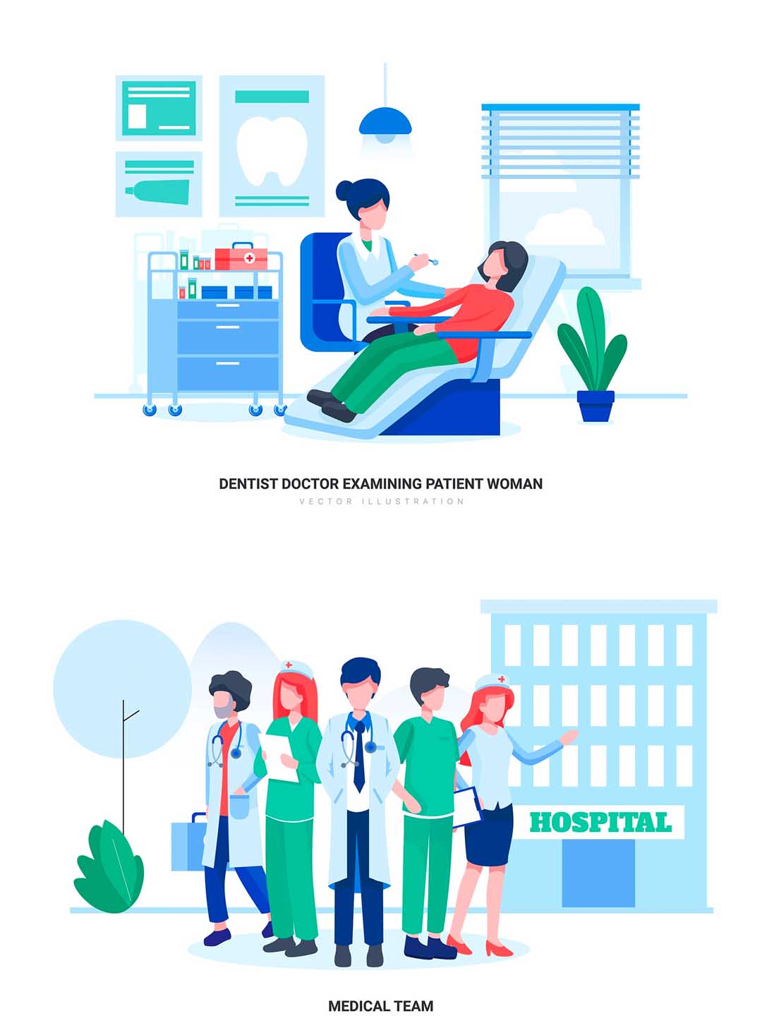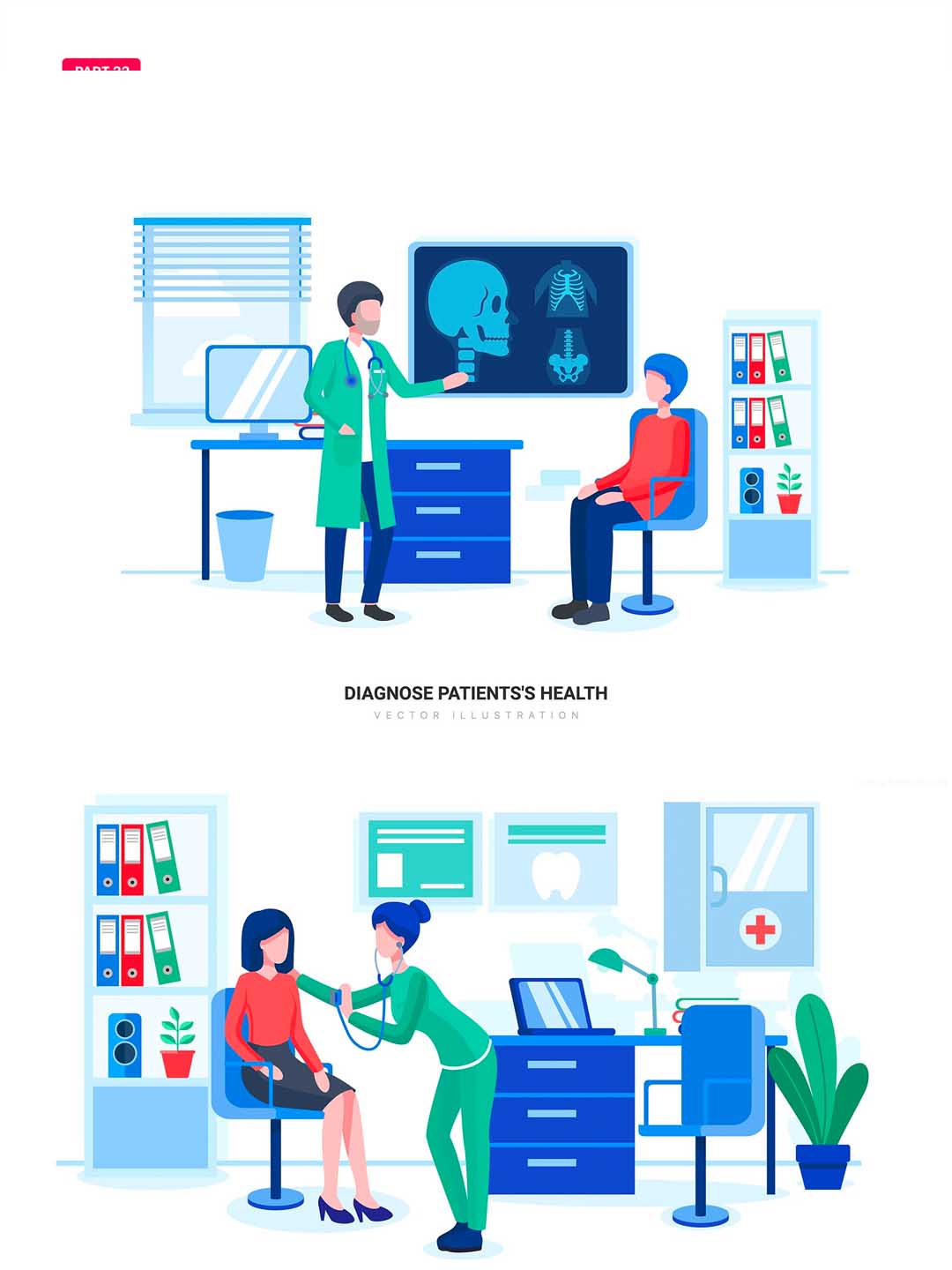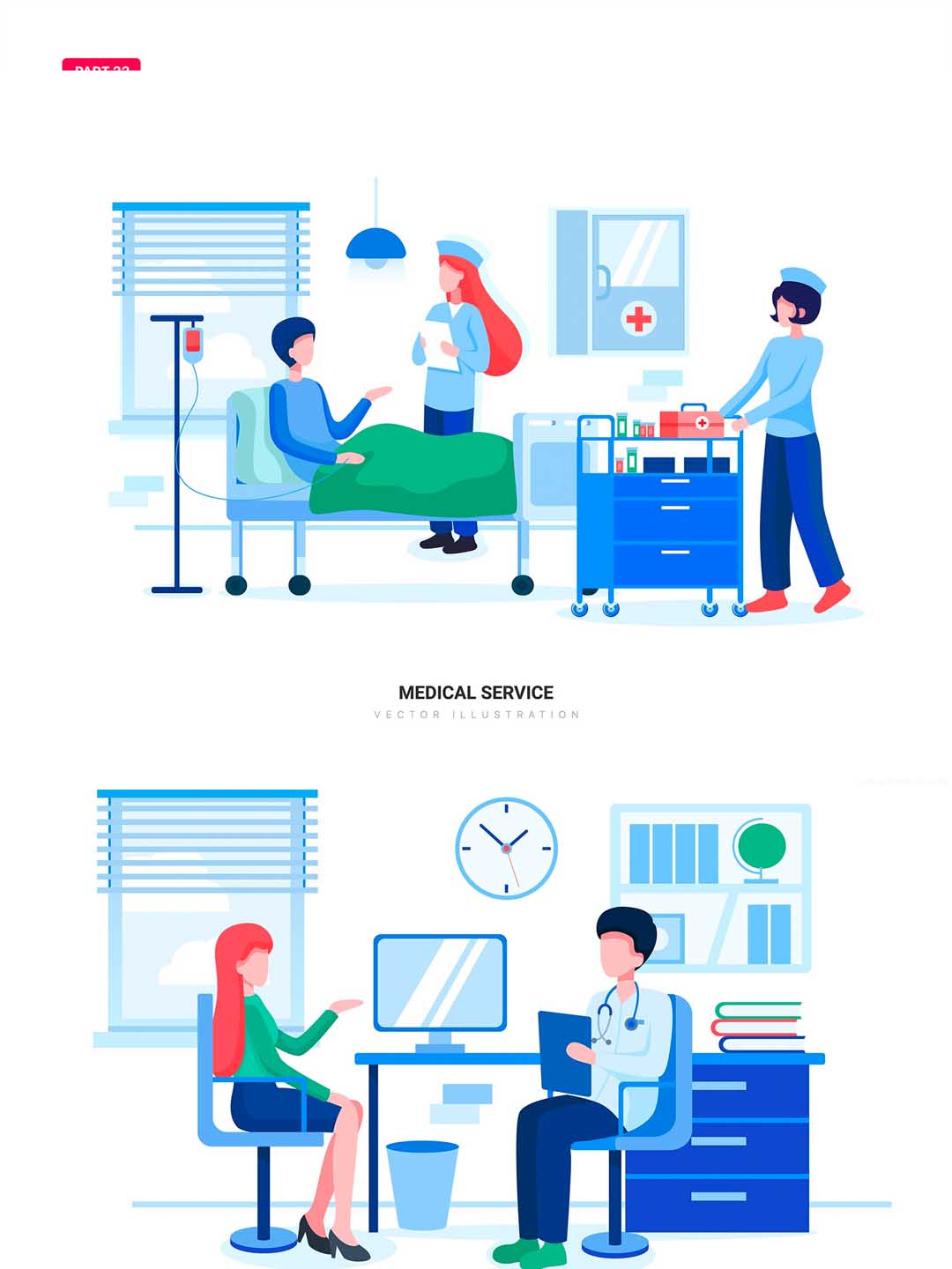 一套医院医疗场景矢量插画套装,医疗健康矢量运营插画场景源文件