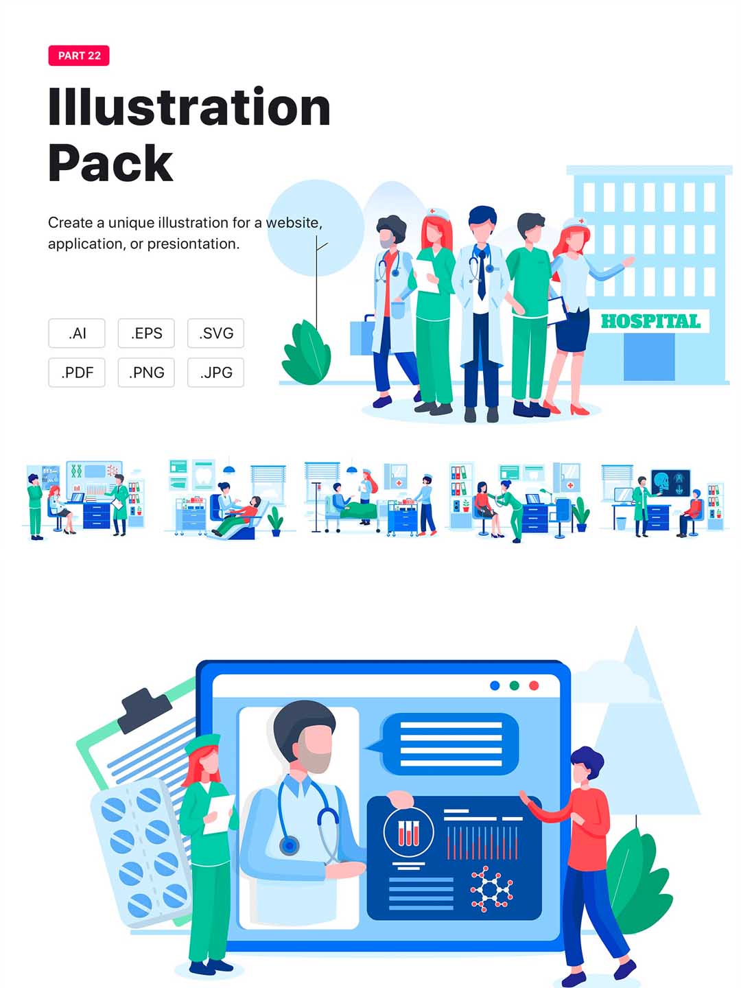 医疗场景人物插画设计psd、sketch、Ai、svg源文件下载