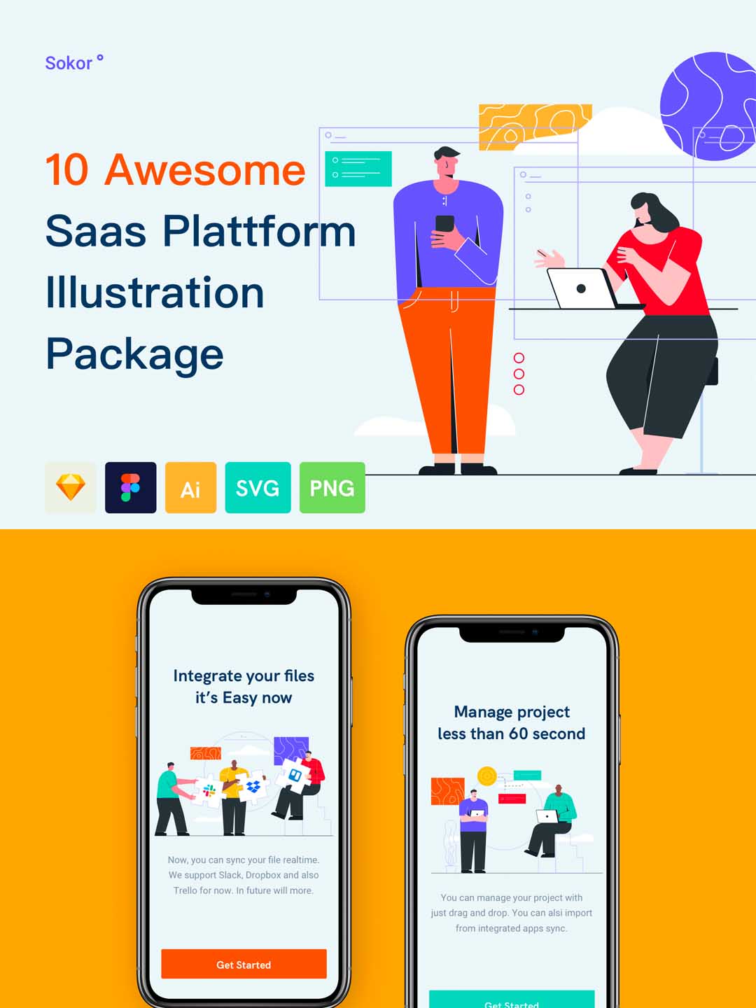 一套B端产品场景插画素材包,SaaS平台应用场景插画素材包svg,png,sketch,ai,eps,fig格式源文件