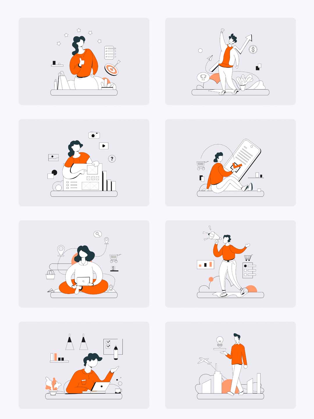 一组矢量描边运营插画源文件,运营插画ai、psd源文件下载