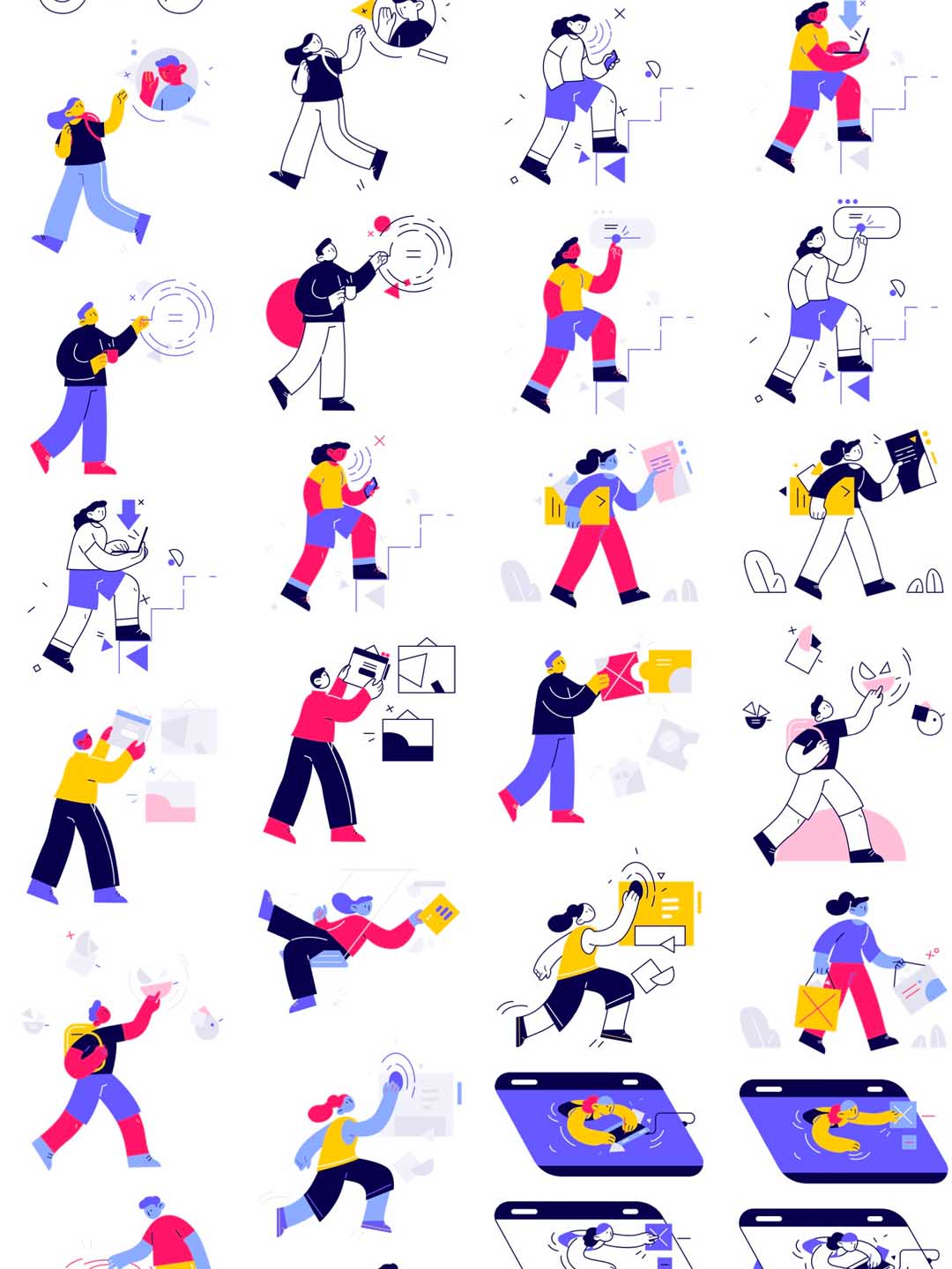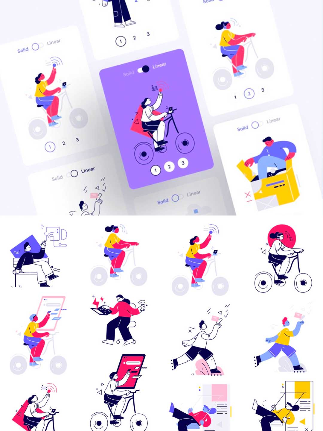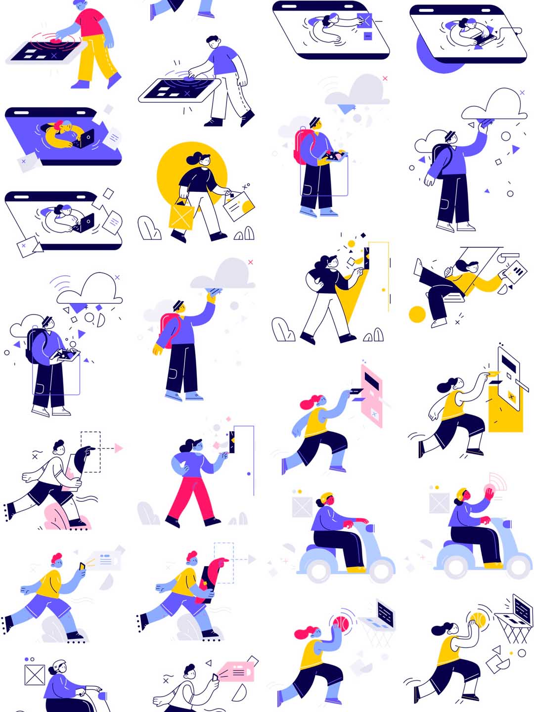 一套有特色的矢量线条风格插画运营套件ai源文件,矢量运营插画适用于电商场景的矢量插画UI素材