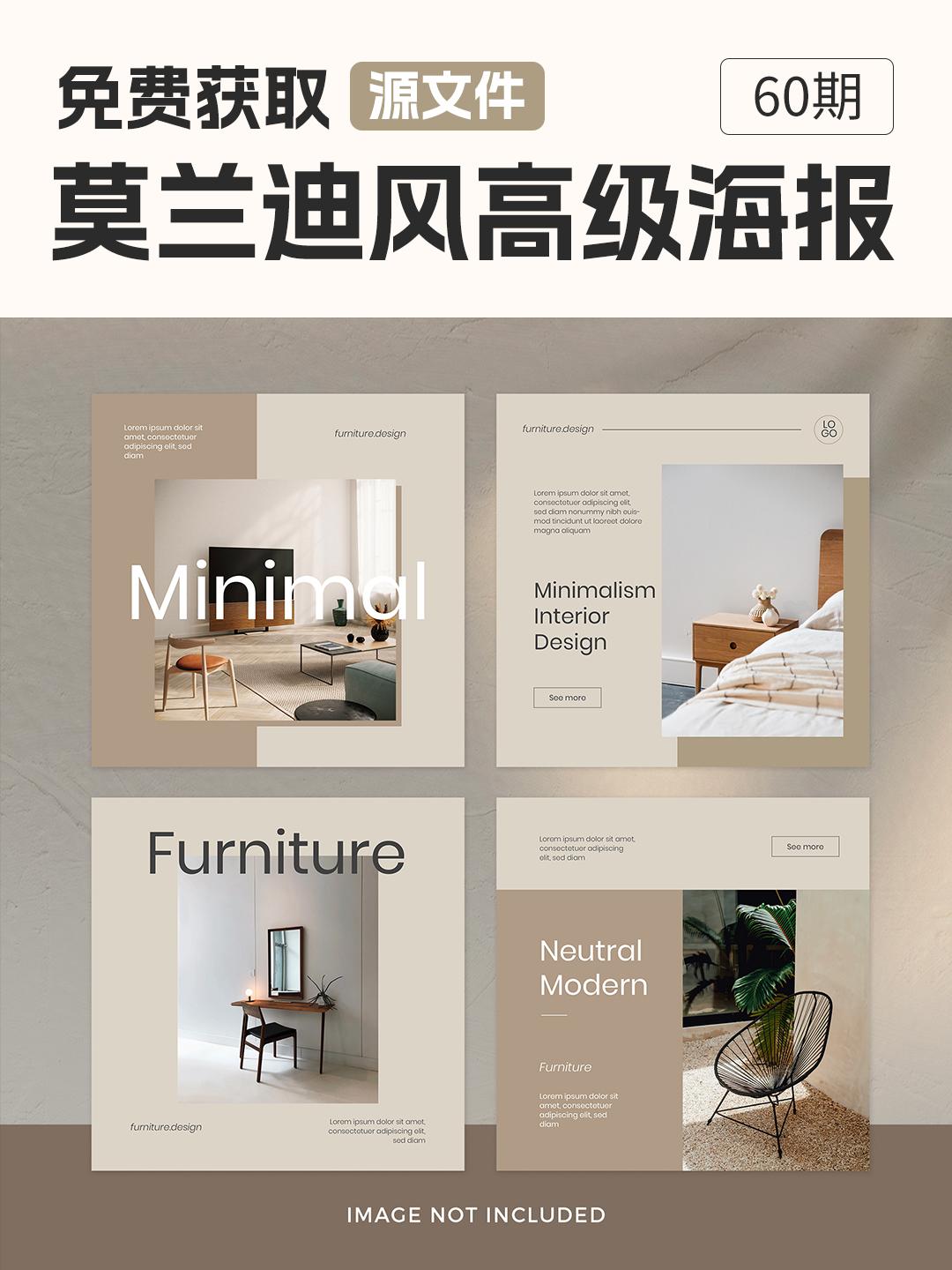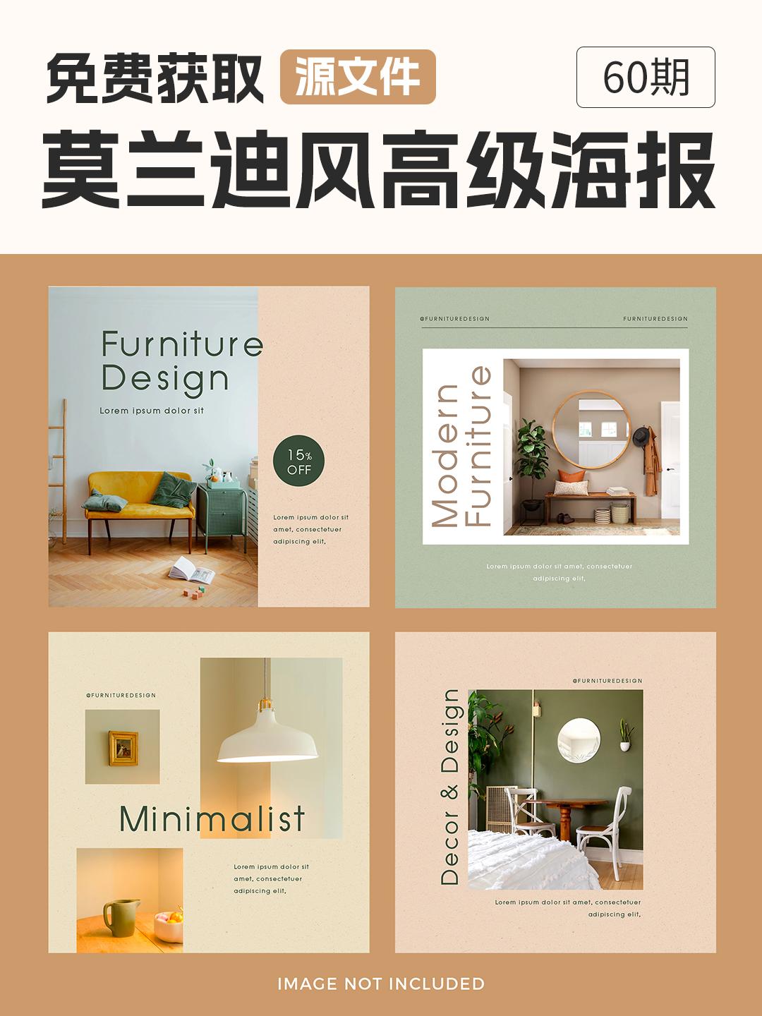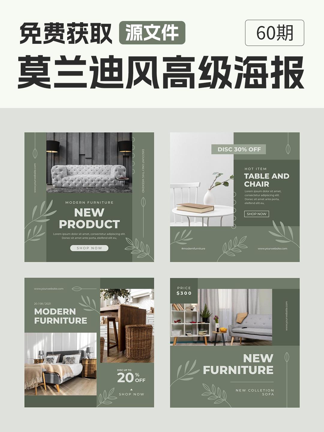 家具类莫兰迪风海报 | 版式设计灵感 | PSD、AI设计源文件