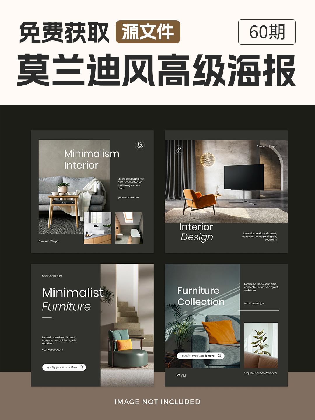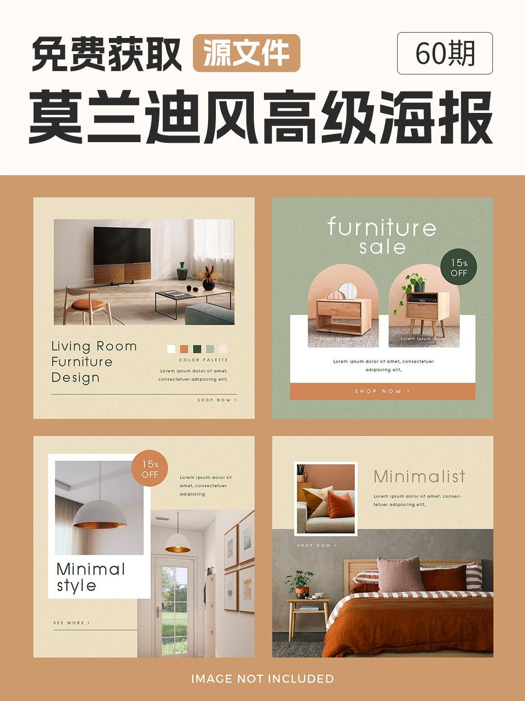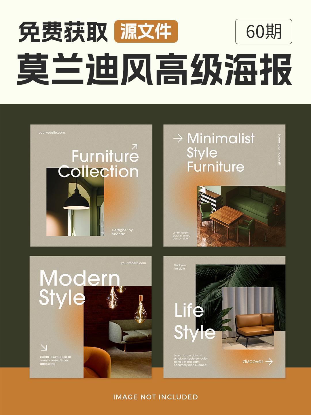 家具类莫兰迪风海报 | 版式设计灵感 | PSD、AI设计源文件