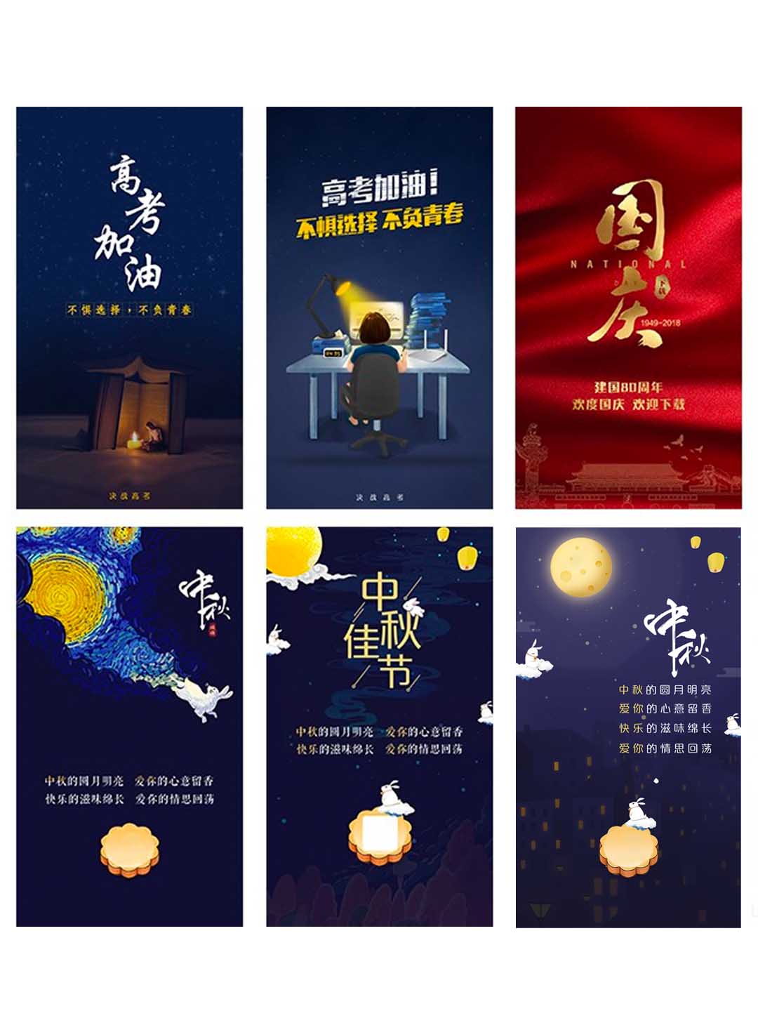高考+国庆节+中秋节多款节庆运营页,海报psd下载