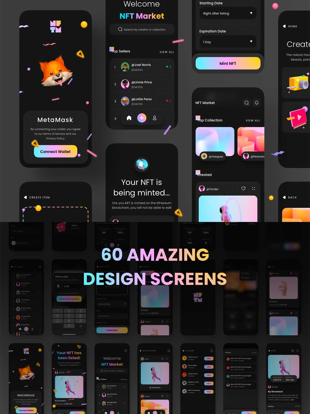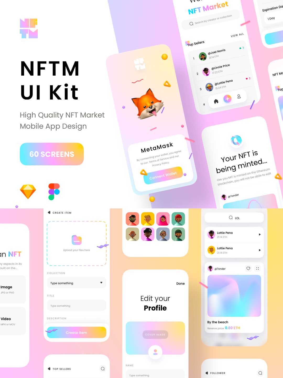 50页区块链和加密,NFT市场App应用UI设计Figma、Sketch源文件