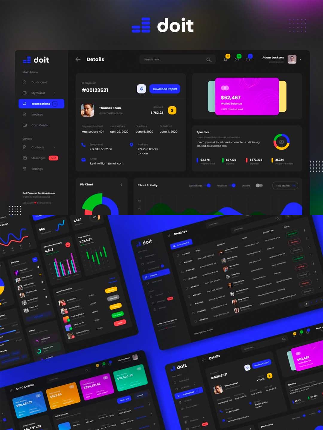 在线教育产品后台管理dashboard应用界面暗色模式UI素材模板fig,sketch源文件