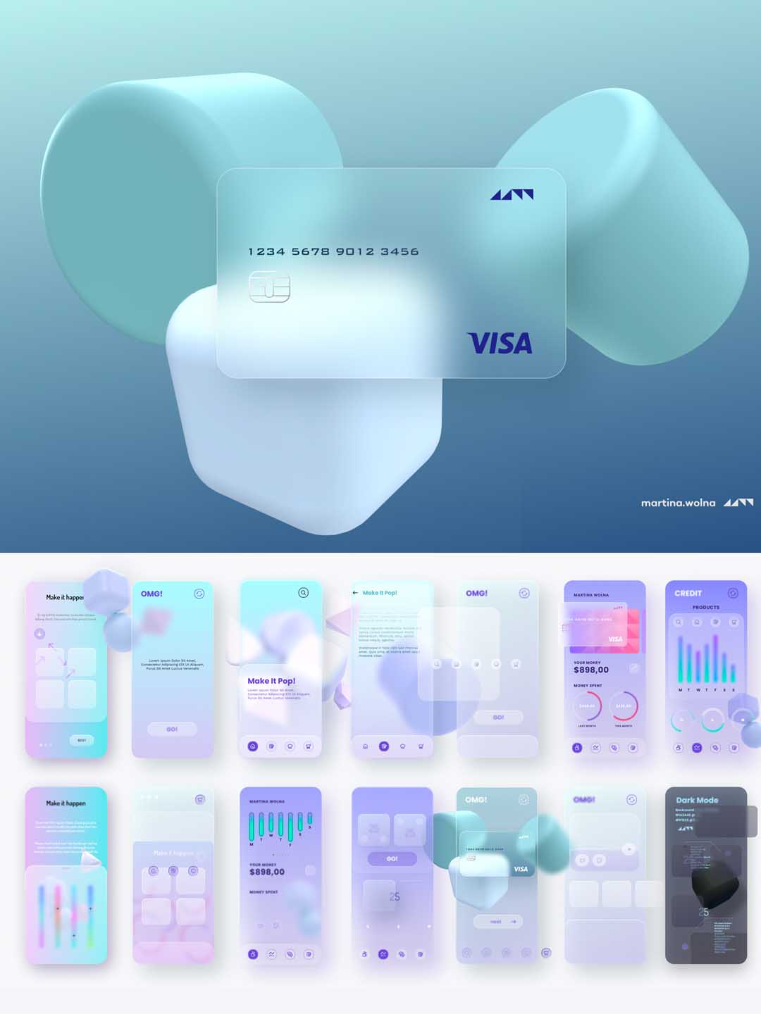 新拟物质感、玻璃拟物质感UI源文件,Neumorphic毛玻璃质感UI kit UI资源figma源文件