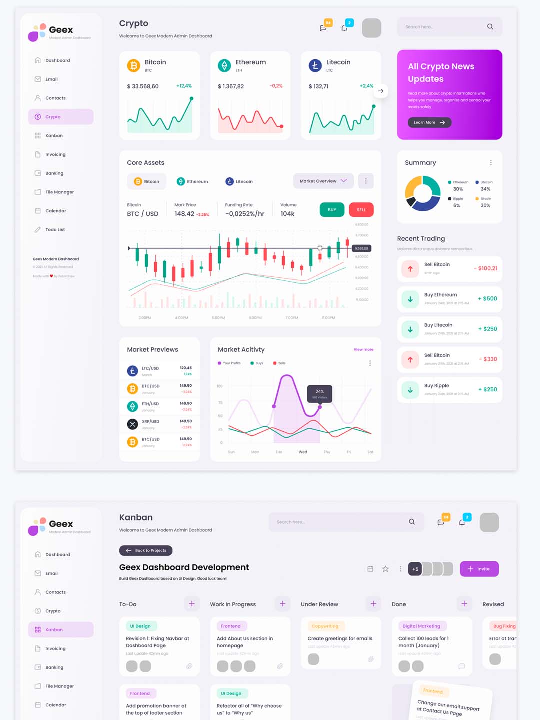 五个简约大气的金融行业仪表盘UI素材xd,figma,sketch源文件