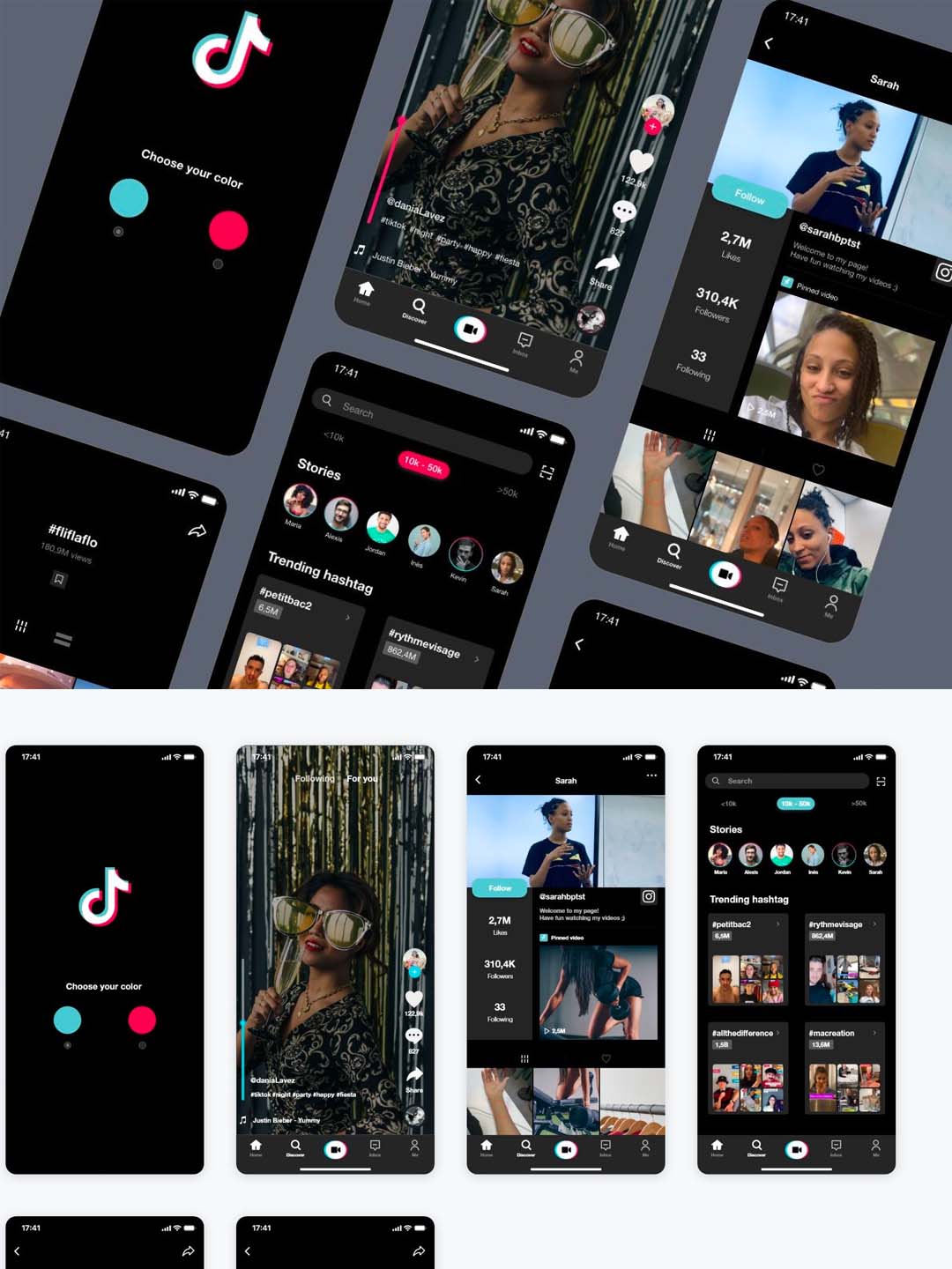 抖音短视频APP 海外版TikTok 重设计UI源文件下载,抖音UI素材xd源文件