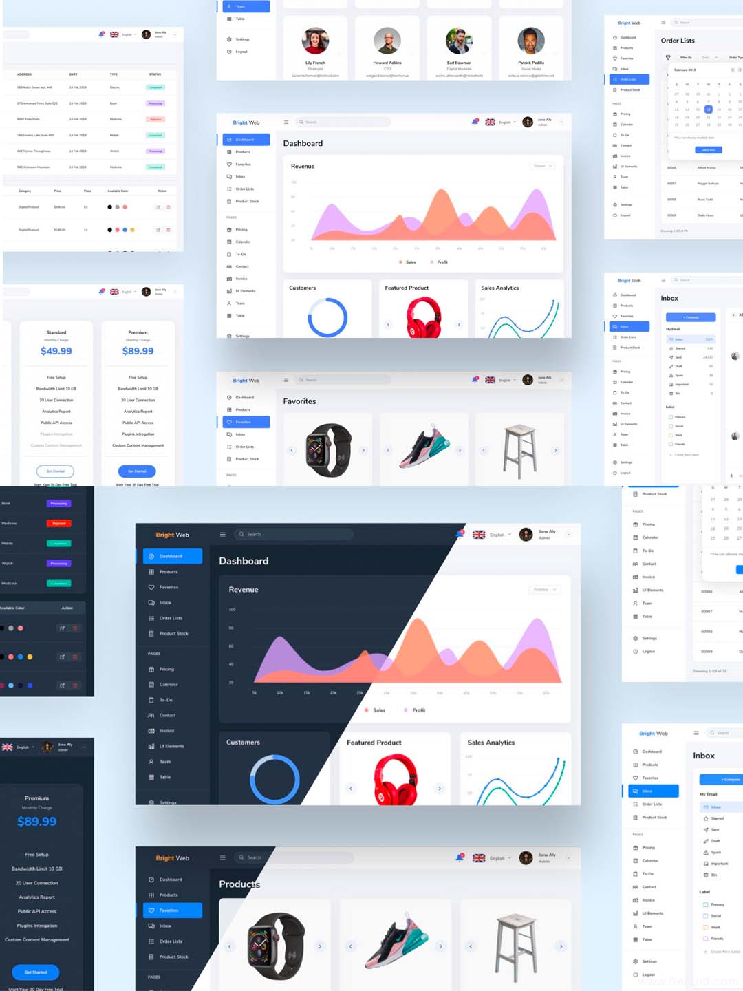 一套精品简洁风B端后台dashboard仪表盘UI源文件,管理后台XD素材下载
