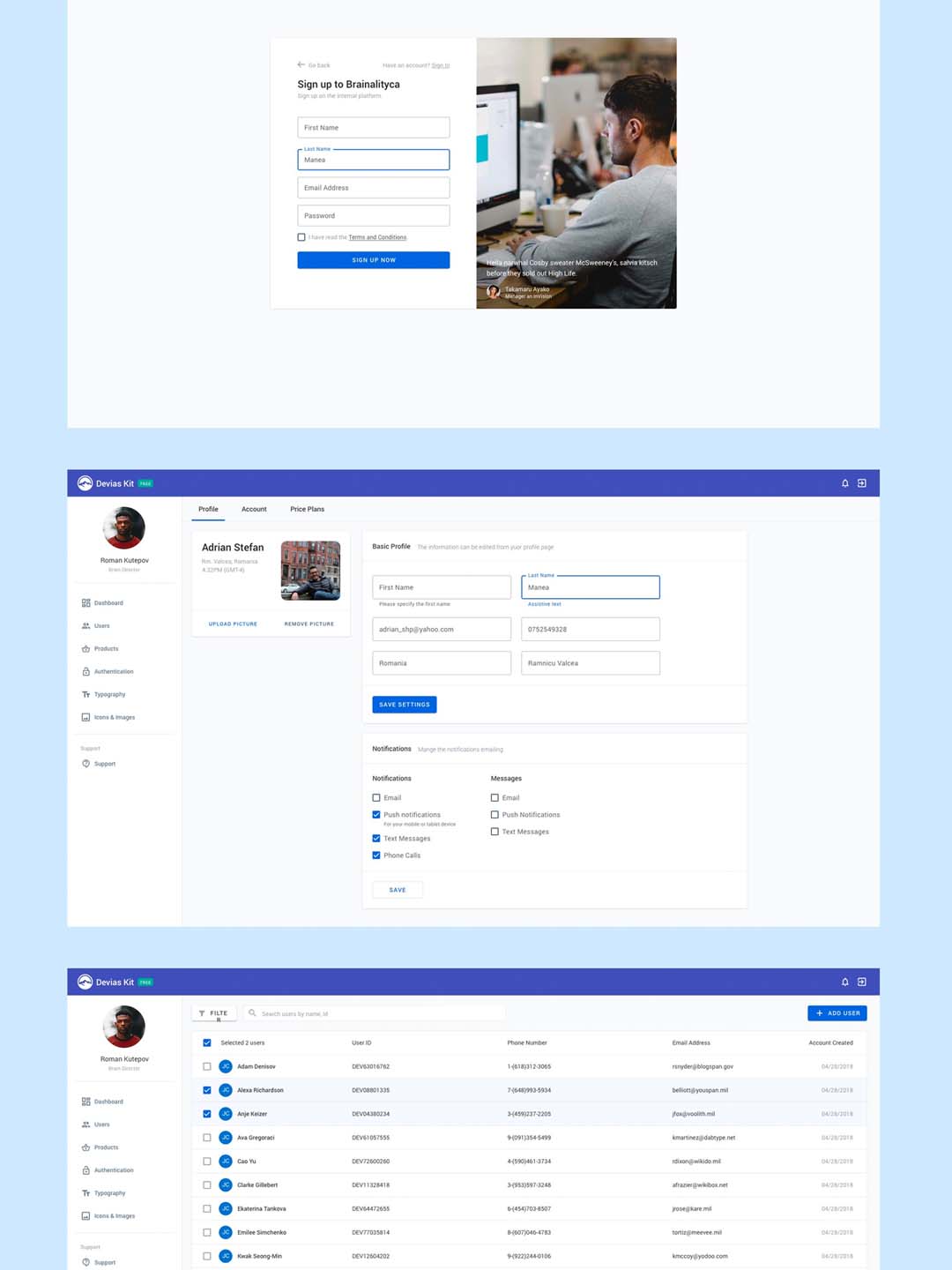 网站个人信息界面、网站后台用户信息界面sketch源文件下载