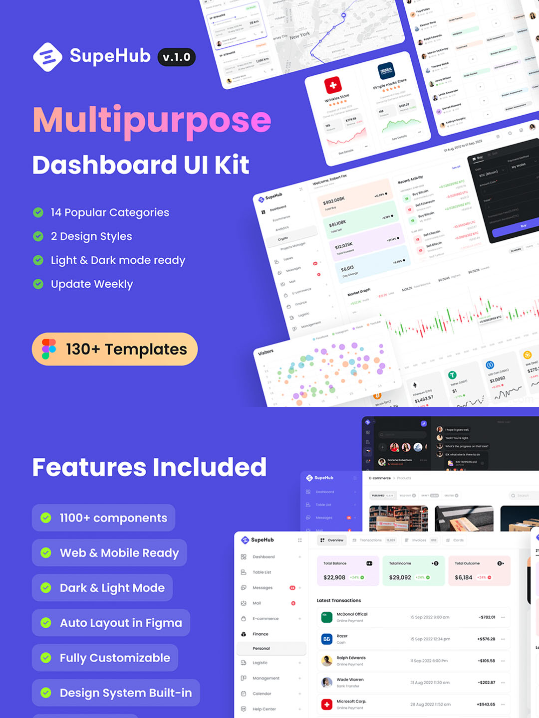 130页,14类后台管理仪表盘面板B端产品UI设计套件 figma源文件