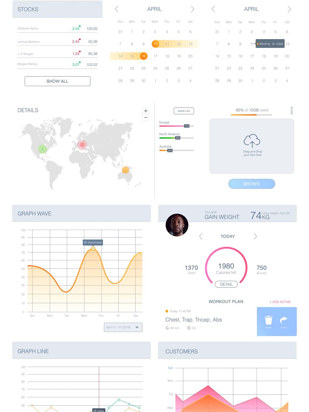 一套精品简洁风B端后台dashboard仪表盘UI源文件,管理后台XD素材下载