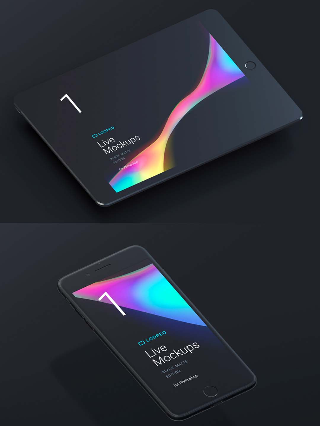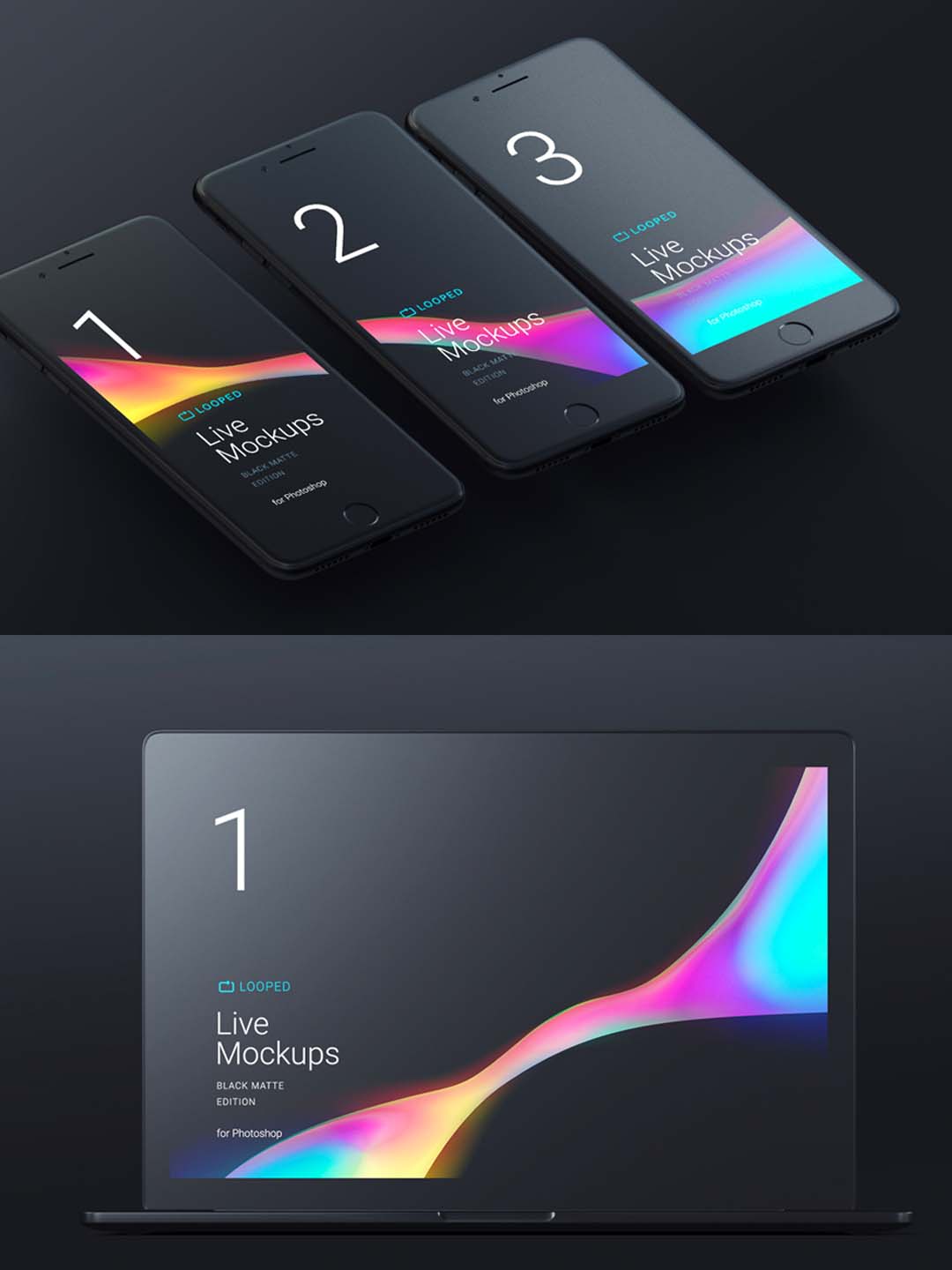 超酷黑色全套包括iMac、iphone、iPad、iWatch、MacBook模板,psd+sketch