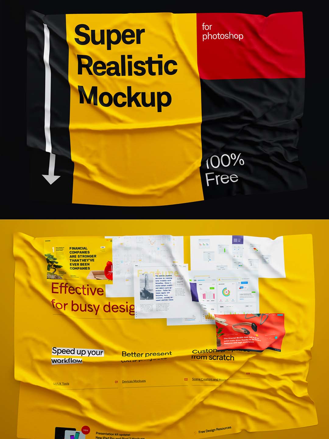 高保真褶皱纸张/界面包装模板,PSD源文件