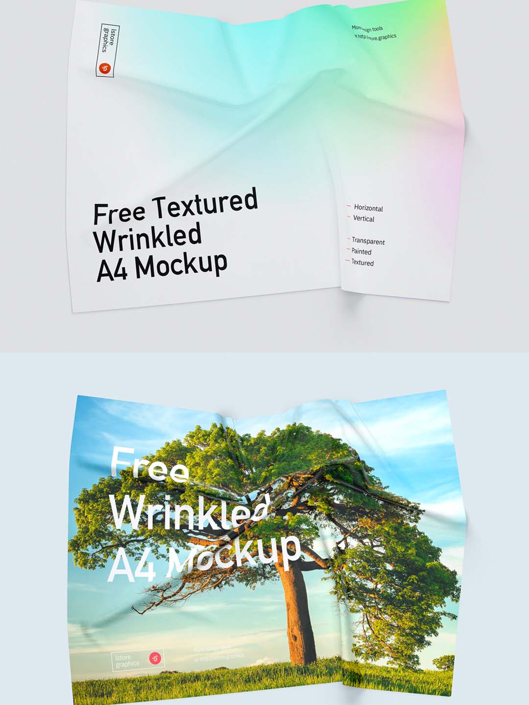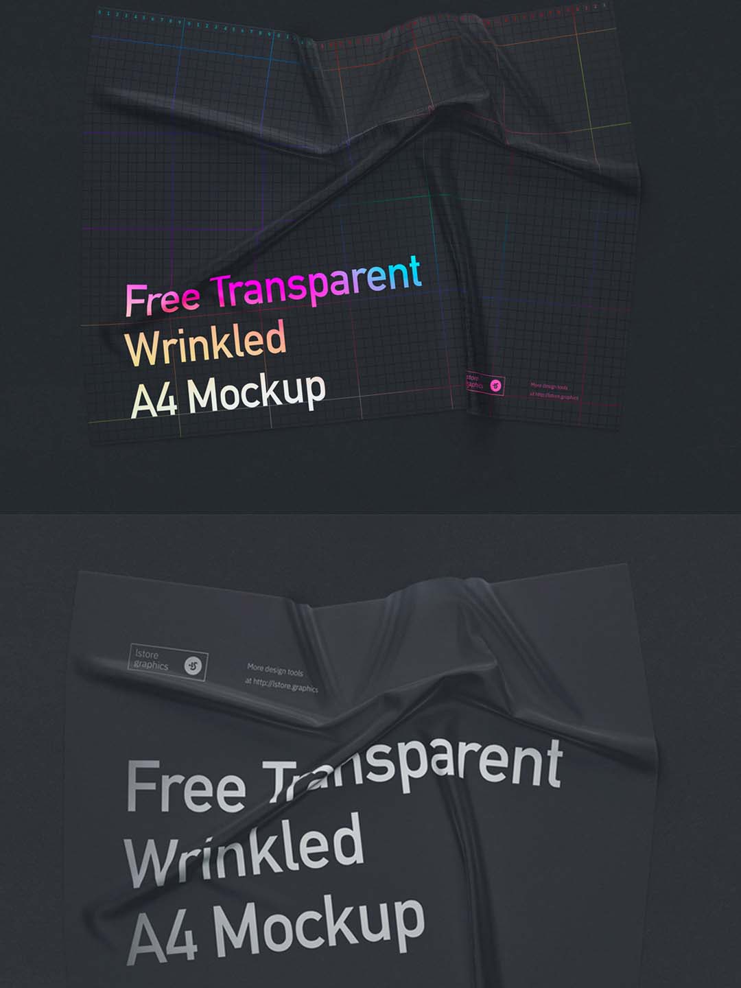 透明褶皱A4纸张展示模型,PSD源文件